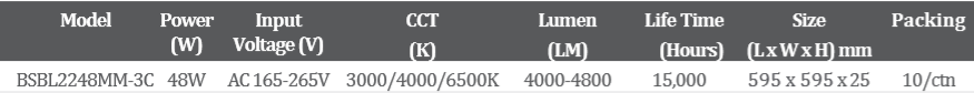[DISCONTINUE] BSLIGHT DESIGNING BACKLIT LED PANEL LIGHT 48W BSBL2248MM-3C WITH 3 COLOUR MODE CHANGEABLE