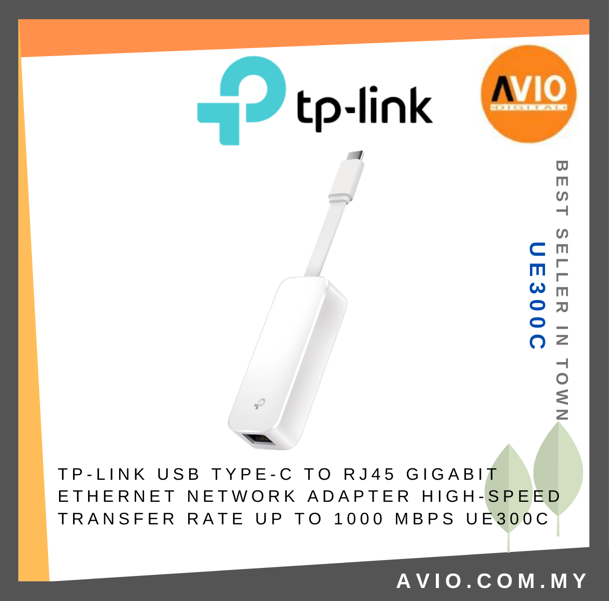 TP-LINK Tplink USB Port 3.0 Type C To RJ45 1000Mbps Gigabit Ethernet Network LAN Port Adapter High Speed White UE300C