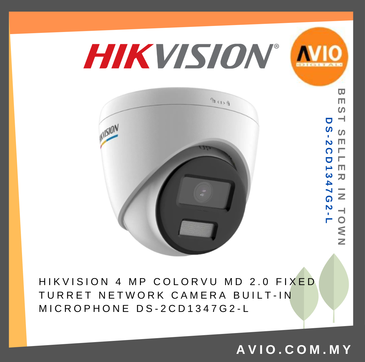 Hikvision 4MP 4 Megapixel ColorVu 24Hour Color IP67 Outdoor IP Network Turret Dome CCTV Camera Mic 30m IR DS-2CD1347G2-L