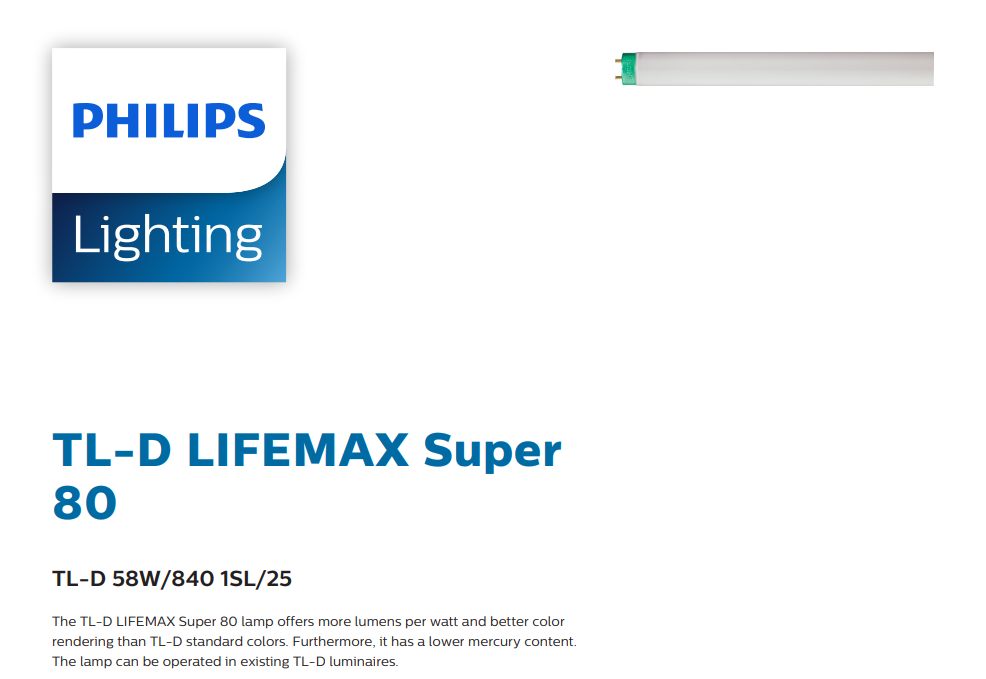 JLL Electrical Sdn Bhd Products PHILIPS TL-D 58W/840 LIFEMAX SUPER80 T8 FLUORESCENT TUBE 1500MM 5FEET (927983284036)