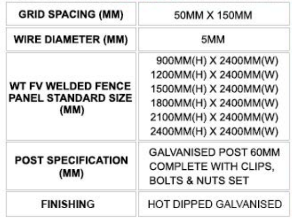 CHENG HUAT HARDWARE (SENTUL) SDN BHD Products FV FENCE - Hot Dipped / Hot Galvanised Spacing 2" (50mm) X 6" (150mm) Standard Width 8 Feet / Galvanised Post "˜60mm Complete With Clips, Bolts & Nuts Set