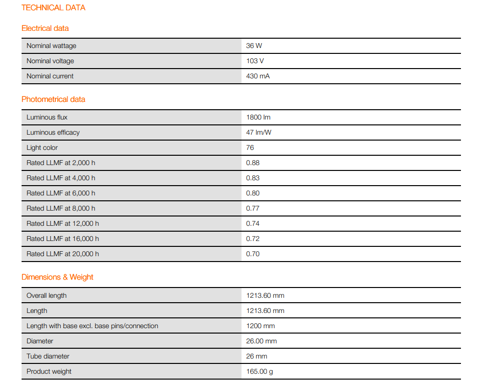 JLL Electrical Sdn Bhd Products OSRAM NATURA T8 LED TUBE L36W 1800LM 4FEET (MEAT USE)