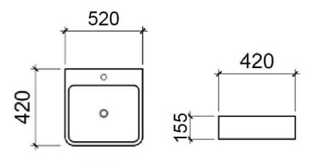 WB-6018 Reign Wall Hung Basin c/w Tap Hole c/w Overflow Hole c/w Fixing Bolts & Nuts (One Pair) Dimensions: 520mm x 420mm x 155mm