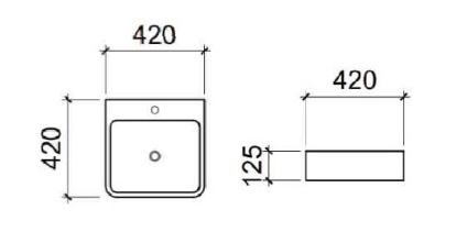 WB-6011 Reign Wall Hung Wash Basin c/w Tap Hole c/w Overflow c/w Fixing Bolts & Nuts (One Pair) Dimensions: 420mm x 420mm x 125mm