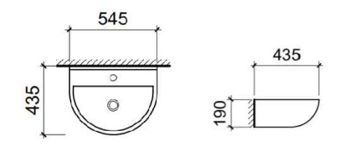 WB-6003 Reign Wall Hung Basin c/w Overflow Hole C/W Fixing Bolts & Nuts (One Pair) Dimensions: 545mm x 435mm x 190mm