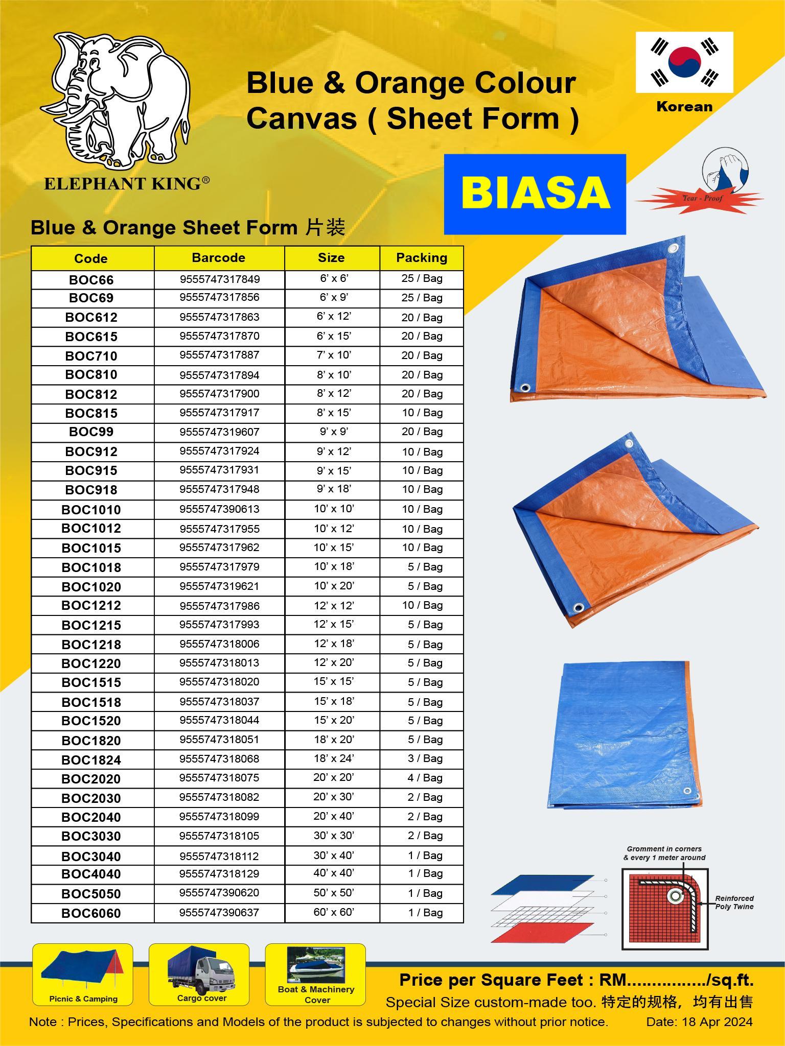 CHENG HUAT HARDWARE (SENTUL) SDN BHD Products Waterproof Tarpaulin Canvas Blue Orange