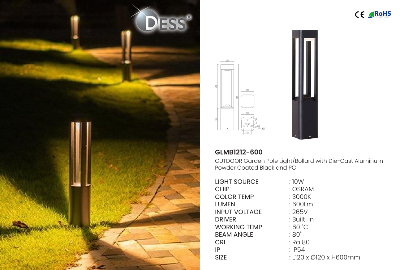 DESS GLMB1212-600 LED OUTDOOR GARDEN LIGHT 265V 10W 600LM 3000K IP54 CRI80 EX STOCK SUBJECT TO PRIOR SALES OR INDENT For more information & availability, please kindly send us an enq...