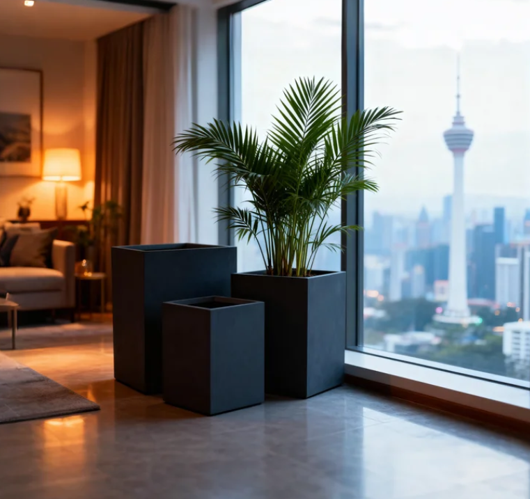 Potco Base Sdn Bhd Products FRP Fiberglass Pot PC1247-17062 Nordic Minimalist Fiberglass Square Tall Floor-Standing Flowerpot 北欧极简玻璃钢方形高款落地花盆 Pasu Bunga Berdiri Lantai Tinggi Persegi Gentian Kaca Minimalis Nordic