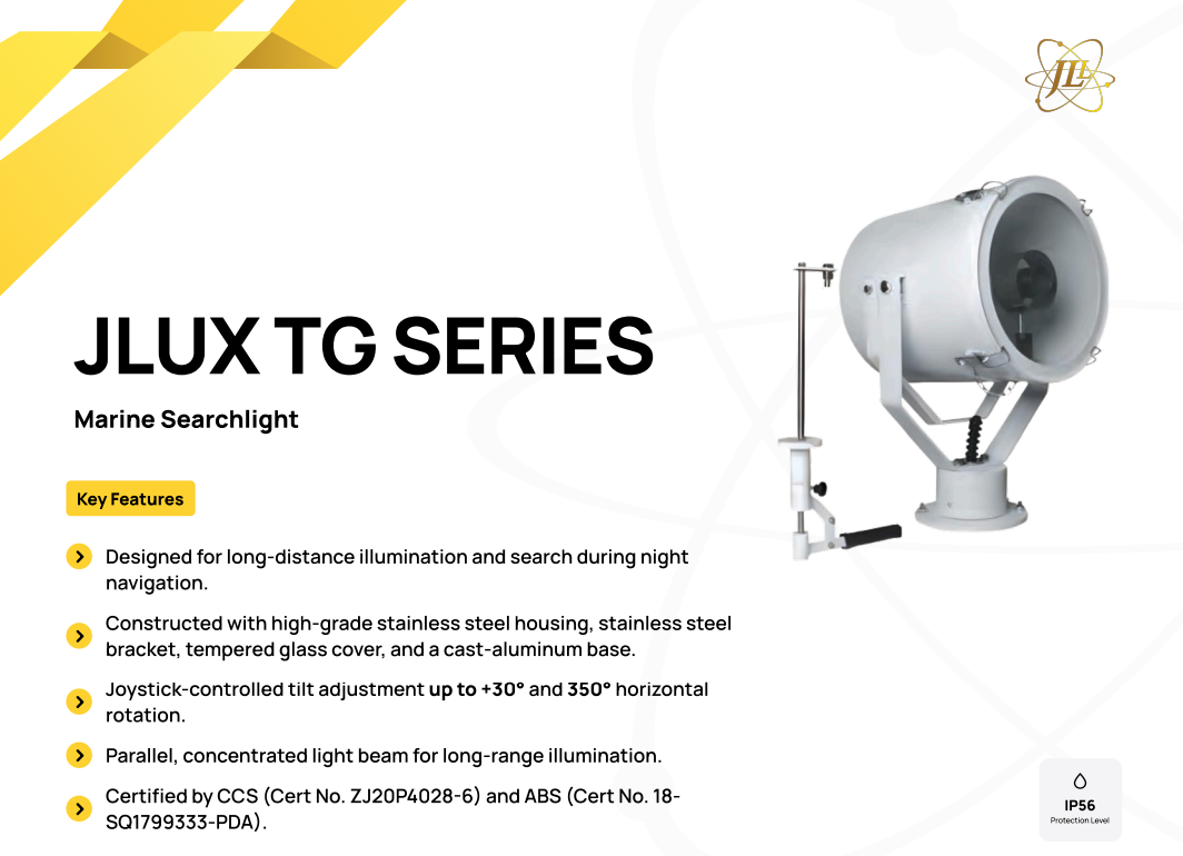JLL Electrical Sdn Bhd Products JLUX TG26/TG27/TG28 MARINE HIGH POWERED SEARCH LIGHT FOR MARINE SHIP NAVIGATION, RESCUE, LIFESAVING, WARNING AND AIR-SEA SEARCHING 220V IP56 [1000W/2000W] [23000LM/53000LM]
