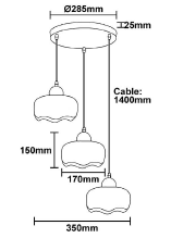 PENDANT-050099/3 CREAM AND RED MAROON 3 HEADS ROUND BASE