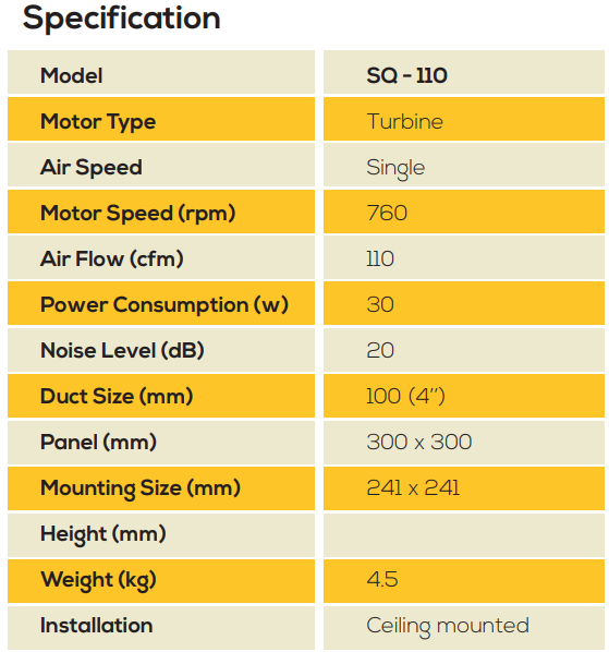 EUROTAN ENTERPRISE SDN. BHD. Products AIREGARD SQ-110-D1/D2 Ventilation Fan
