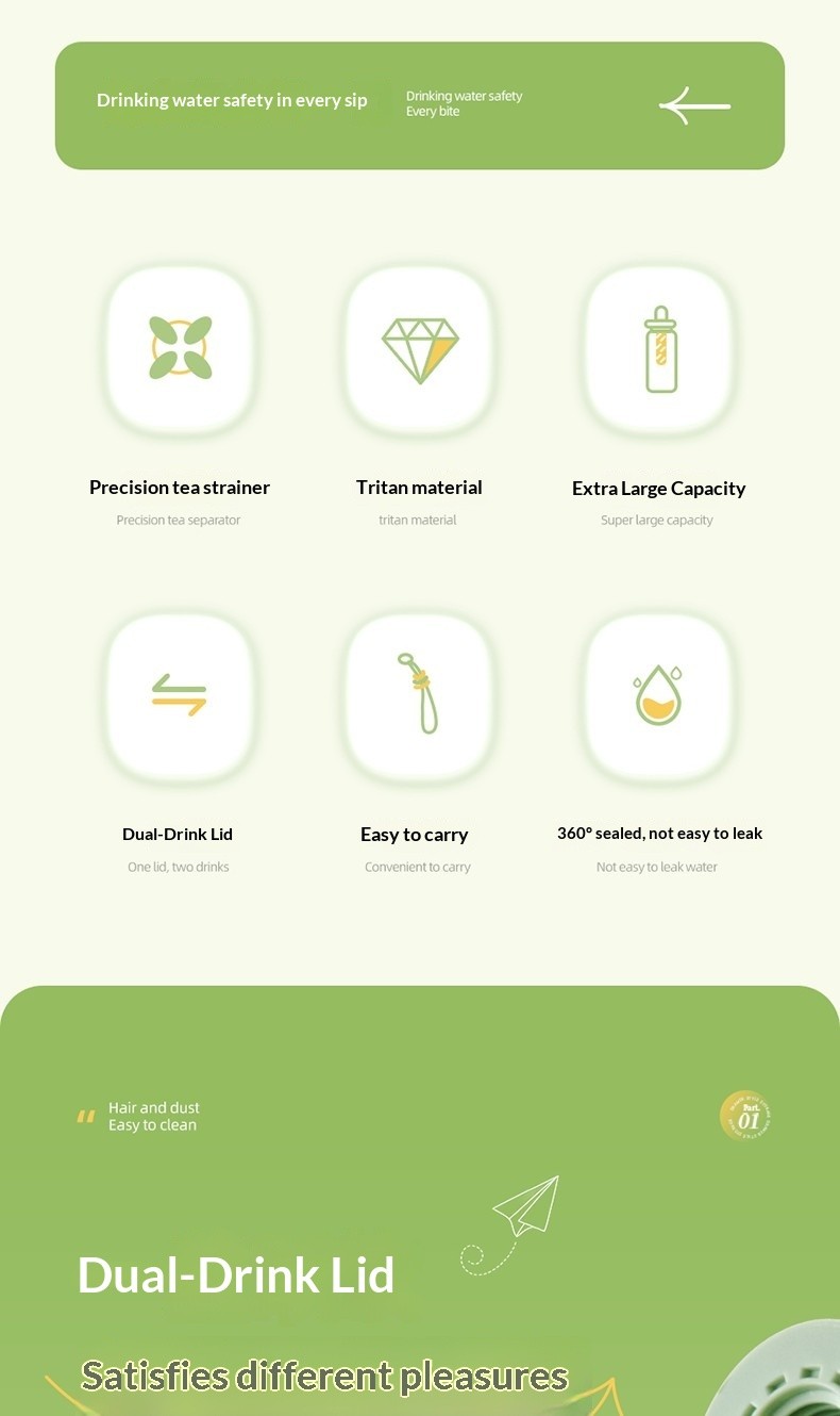 Made from food-grade Tritan material, it is BPA free, odorless and safe for hot or cold drinks. The detachable tea infuser lets you brew tea, fruit water or detox drinks easily while keeping leaves separate from water.