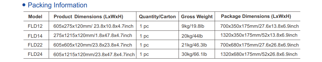 The VENAS FLD24 offers an impressive range of wattages (15W–120W) and luminous outputs (1800LM–14400LM), allowing precise customization for any lighting requirement. With a wide color temperature range (2700K–6500K), users can select from warm to cool daylight tones for the perfect visual comfort and task visibility.