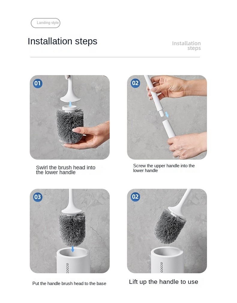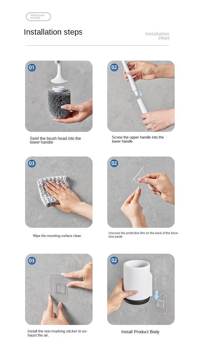 Experience the convenience of our punch-free design. This modern toilet brush comes with a sleek holder that adheres securely to your bathroom wall without the need for drilling, maintaining a clutter-free space. The minimalist design not only saves space but also adds a touch of elegance to your bathroom décor.