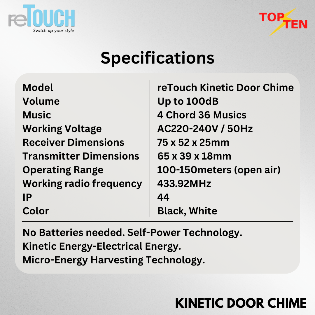 TOP TEN LIGHTING SDN BHD Products ReTouch Kinetic Door Chime
