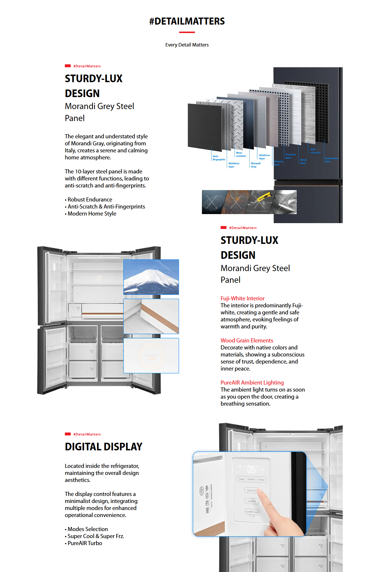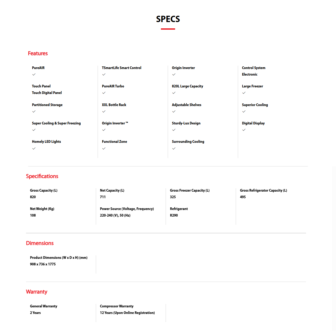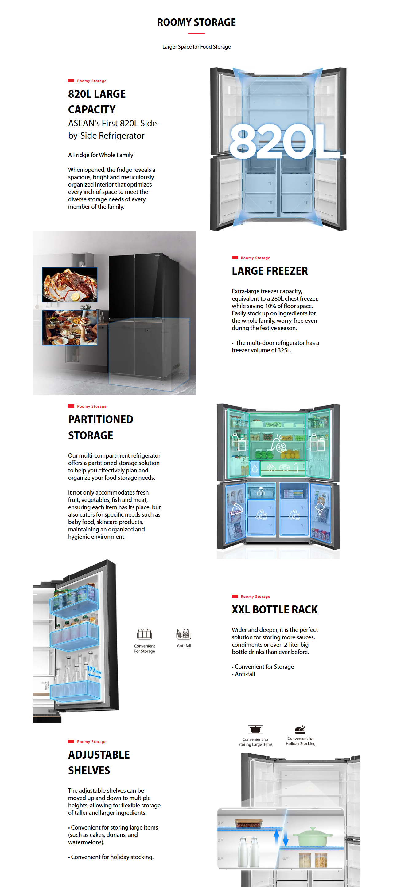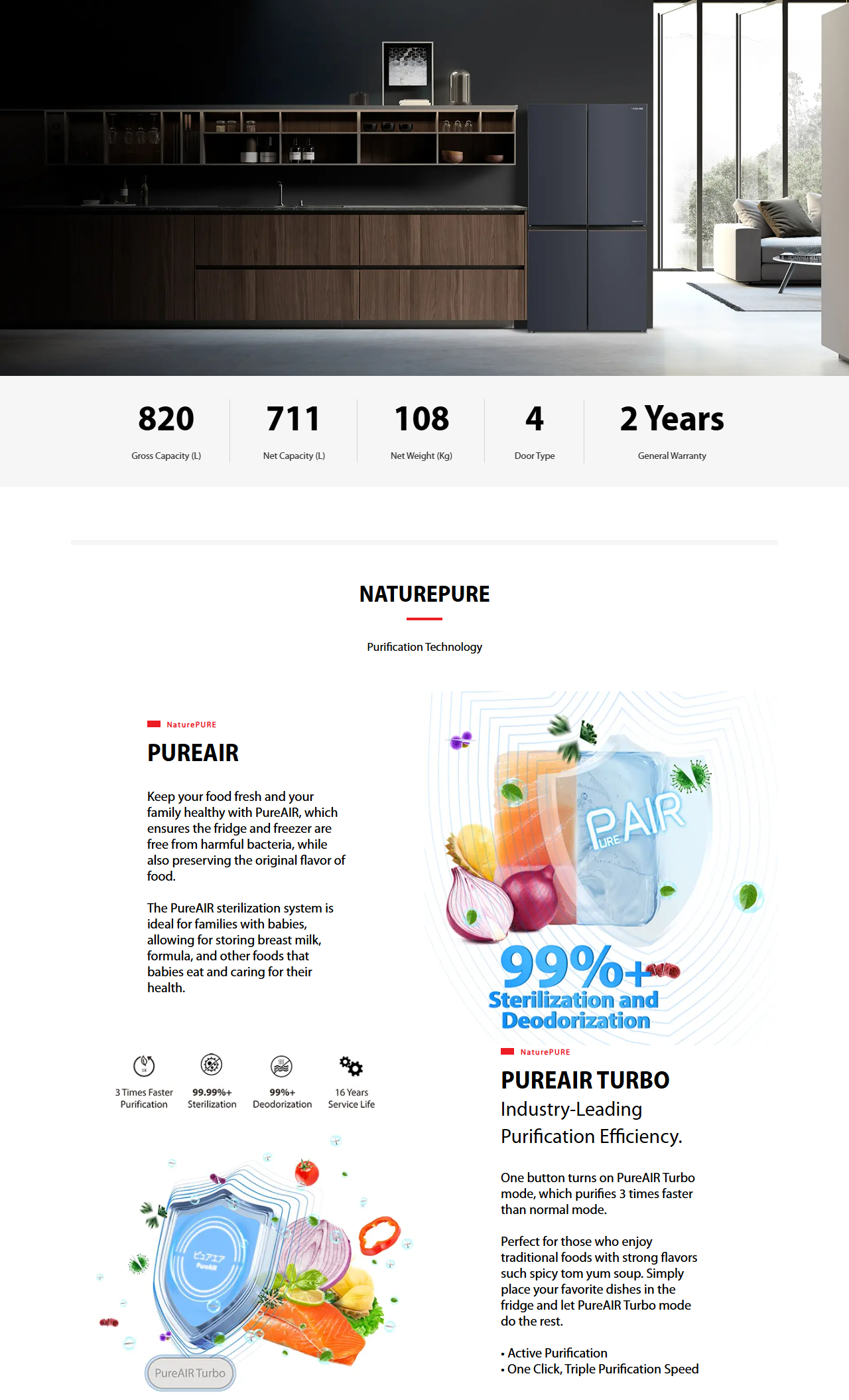 Our exclusive 820L large capacity refrigerator, with its superior PureAIR Turbo air purification system, offers the optimal large capacity storage solution for modern lifestyles.