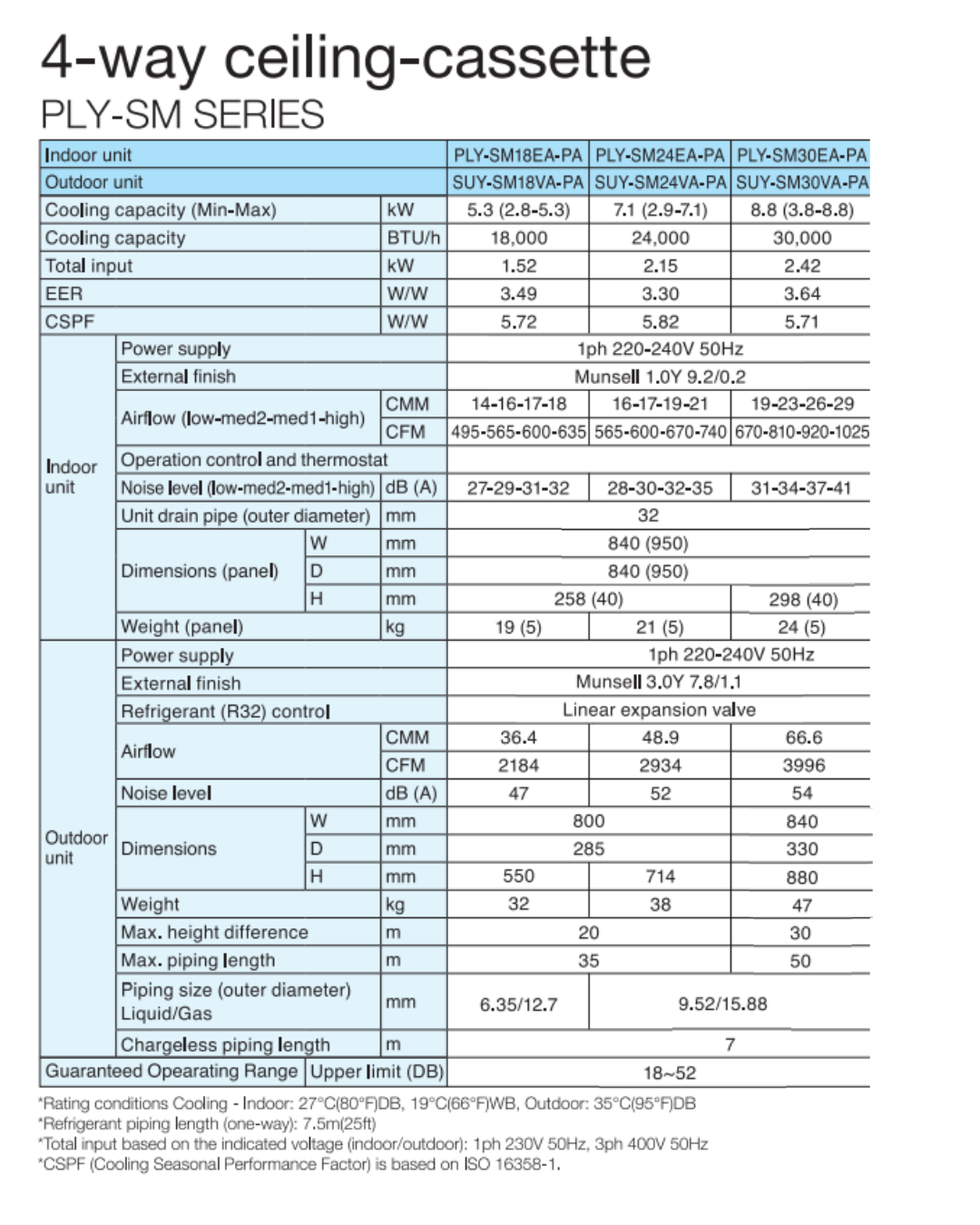 MITSUBISHI ELECTRIC PLY SERIES CEILING CASSETTE R32 INVERTER