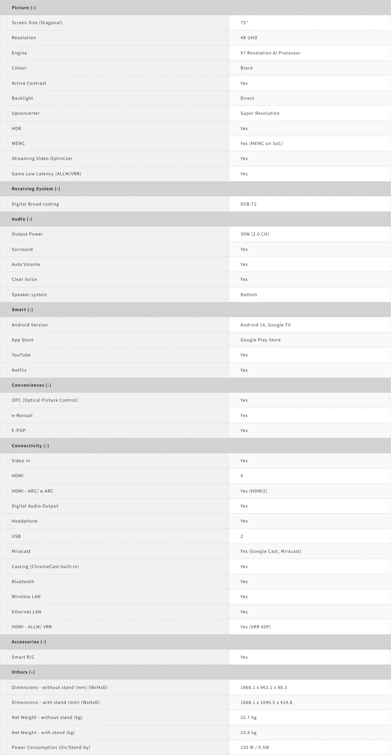 - X7 Revelation Processor- X7 Revelation Processor can reproduce more than 1 billion colours to enhance the picture quality by