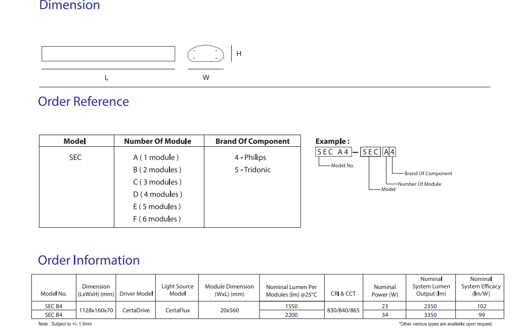 Available in 3000K, 4000K, and 6500K colour temperatures