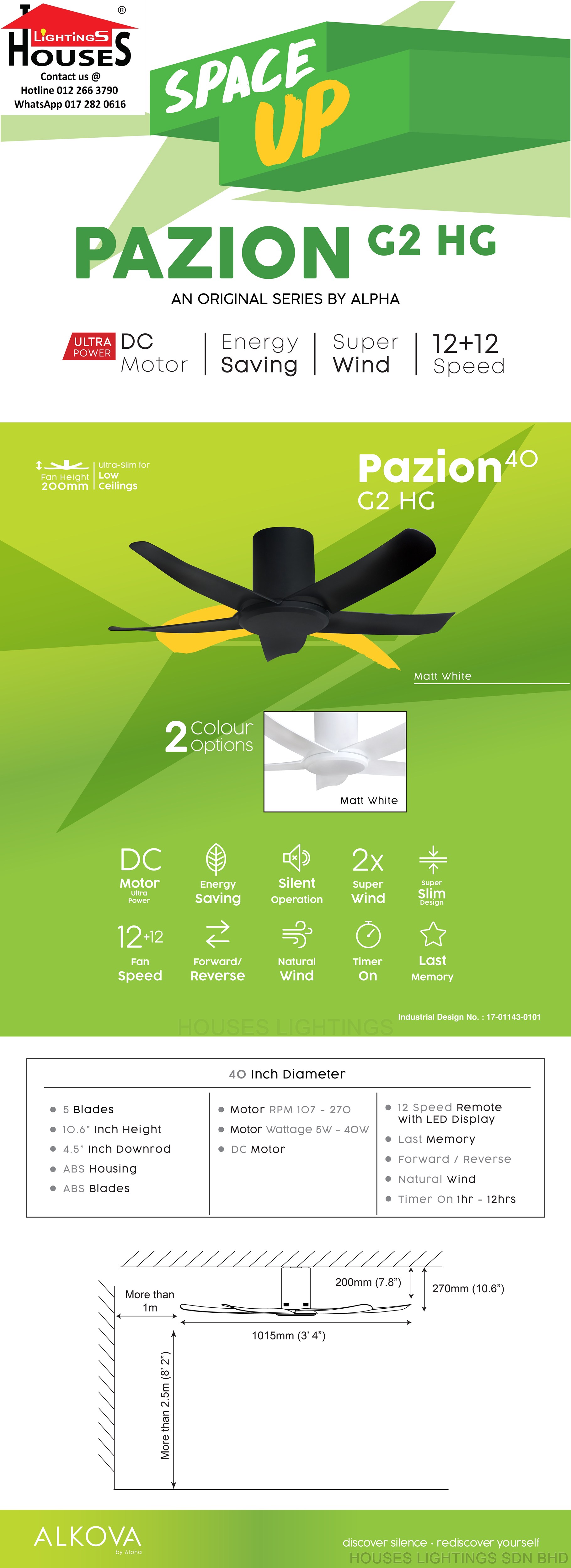 Houses Lightings Sdn Bhd Products ALPHA Alkova - PAZION G2(HG) 40 Inch DC Motor Ceiling Fan With 5 Blades (12 Speed Remote) - Matt Black