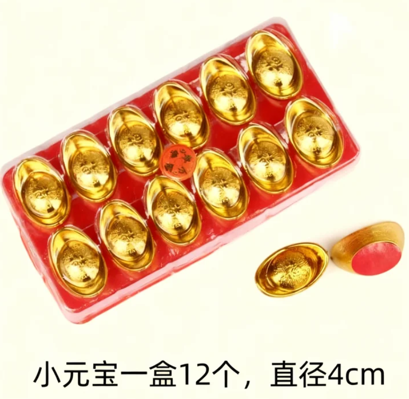 Potco Base Supply Products Gold Plastic Gold-Plated Ingots, Copper Coins, Gold Bars, Spring Festival And New Year Decoration Accessories, Small Ingots, Festive Supplies, Ornaments 金色塑料镀金元宝、铜钱、金条 春节及新年装饰配件 小元宝 节日用品 摆件装饰