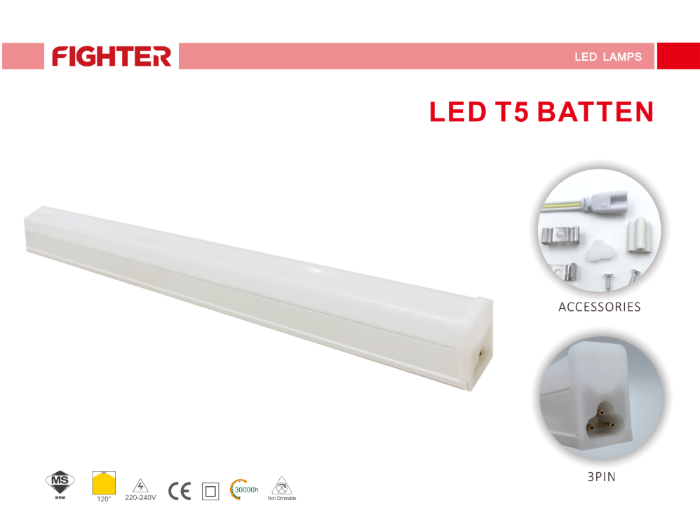 The FIGHTER 3PIN LED T5 BATTEN is an excellent choice for customers searching for LED batten lights, T5 LED battens, or energy-saving indoor lighting solutions, offering flexibility, durability, and trusted FIGHTER quality.