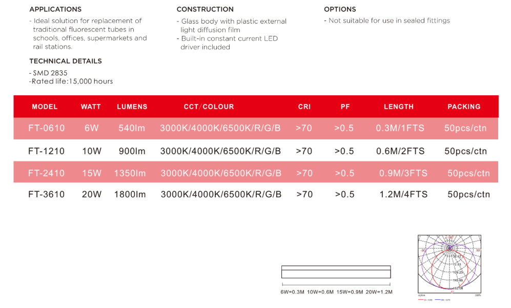 Operating at 240V, the batten provides stable illumination with a CRI70 rating, suitable for everyday general lighting. With a long lifespan of up to 30,000 hours, it helps reduce maintenance and replacement costs.