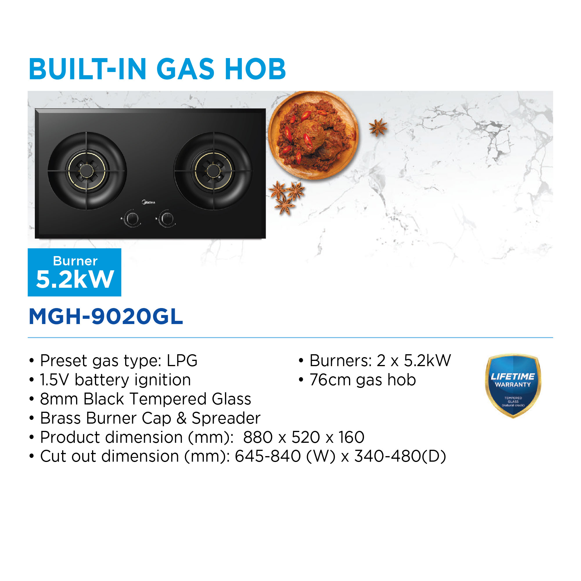 Midea Built in Gas Hob - MGH-9020GL
