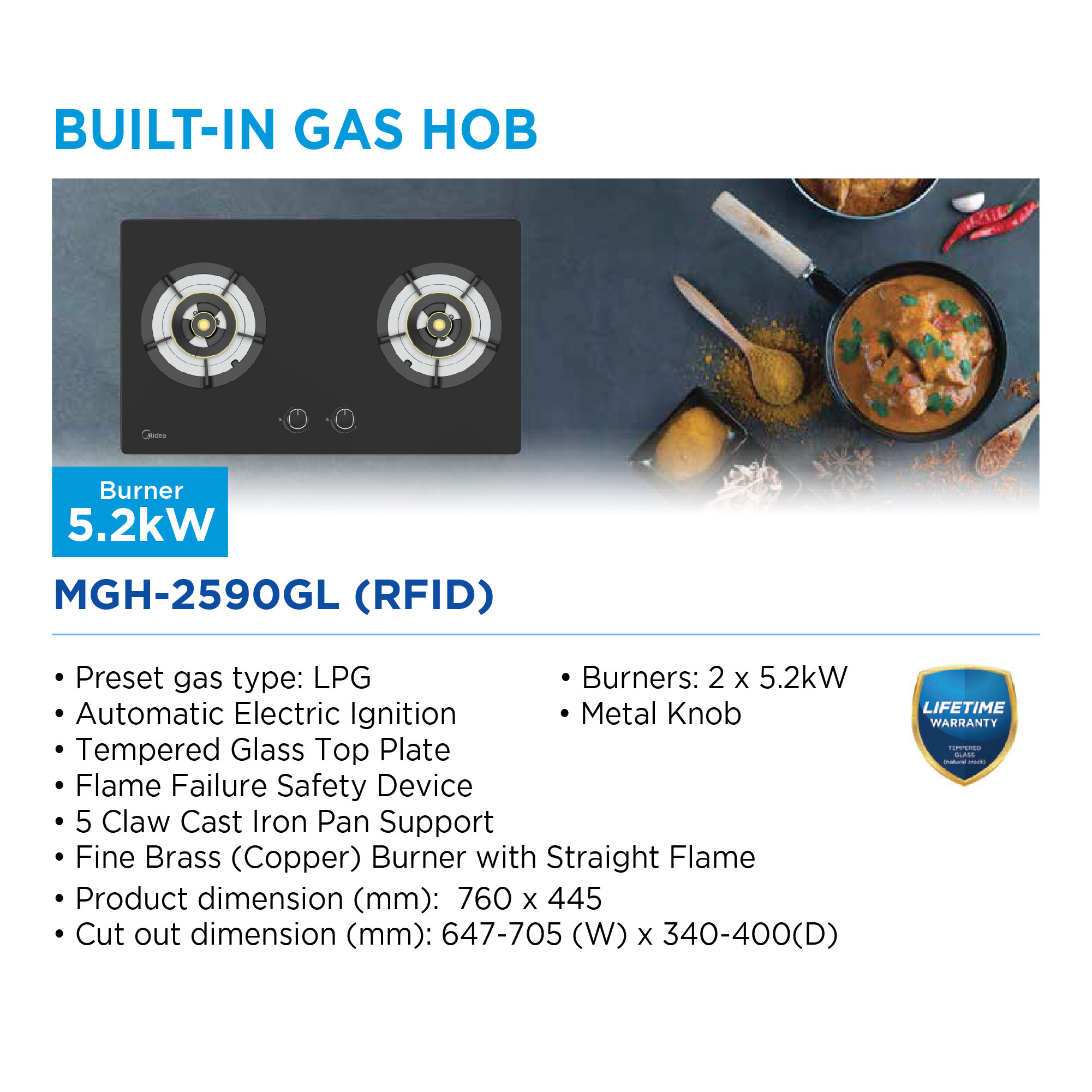 Midea Build in Gas Hob - MGH-2590GL(RFID)