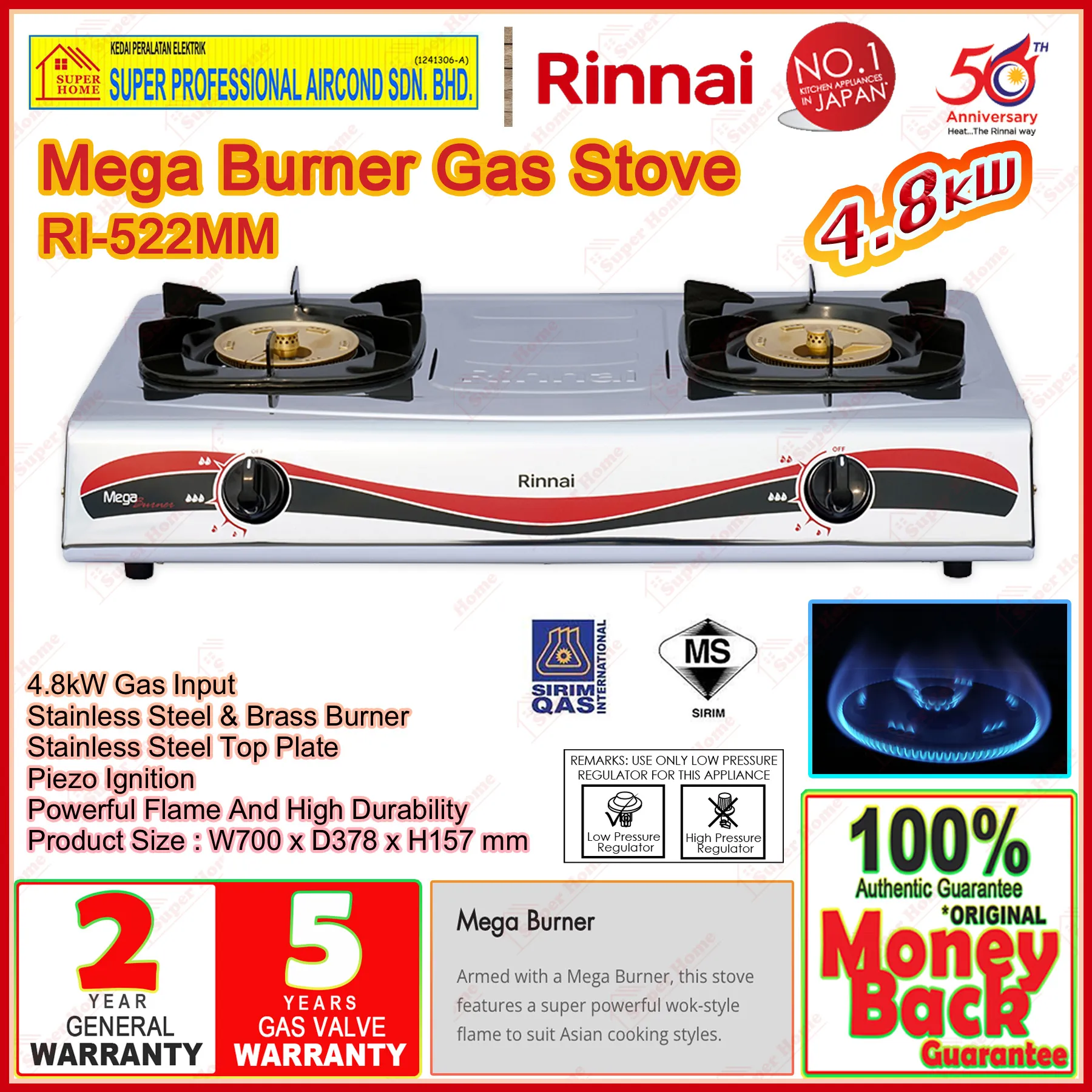 Super Professional Aircond Sdn Bhd Products Rinnai Gas Cooker RI-522MM Mega Burner Table Top Gas Stove - 4.8kW