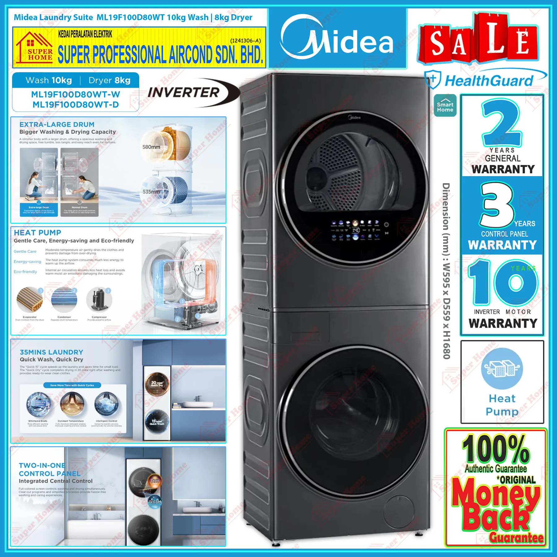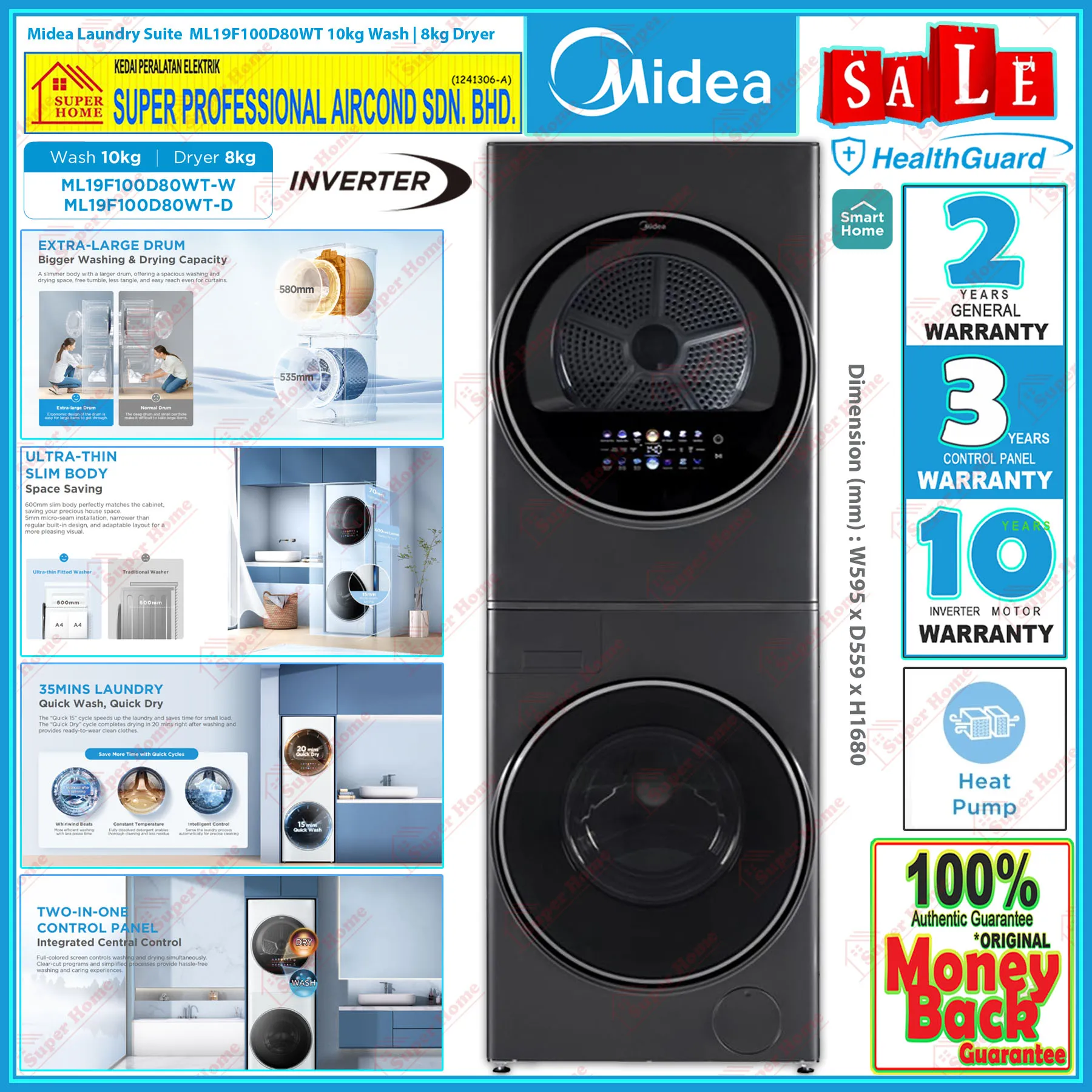 Super Professional Aircond Sdn Bhd Products Midea Laundry Suite ML19F100D80WT Front Load Washer 10kg Dryer 8kg