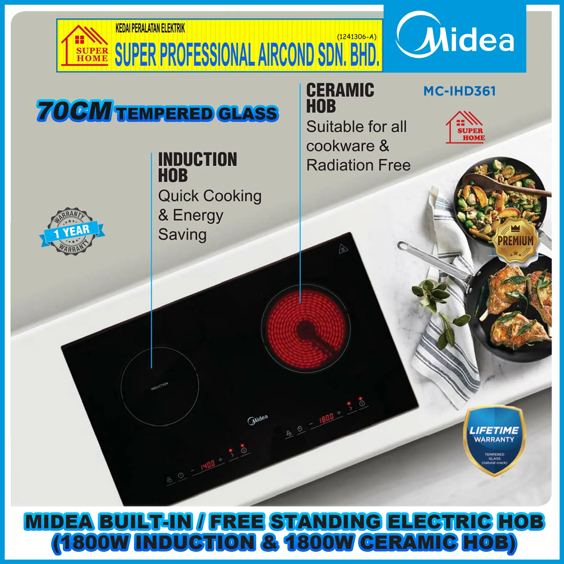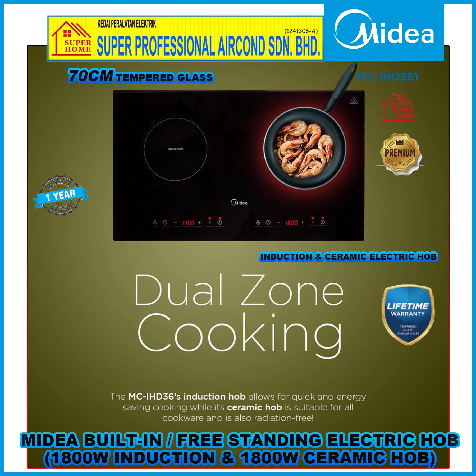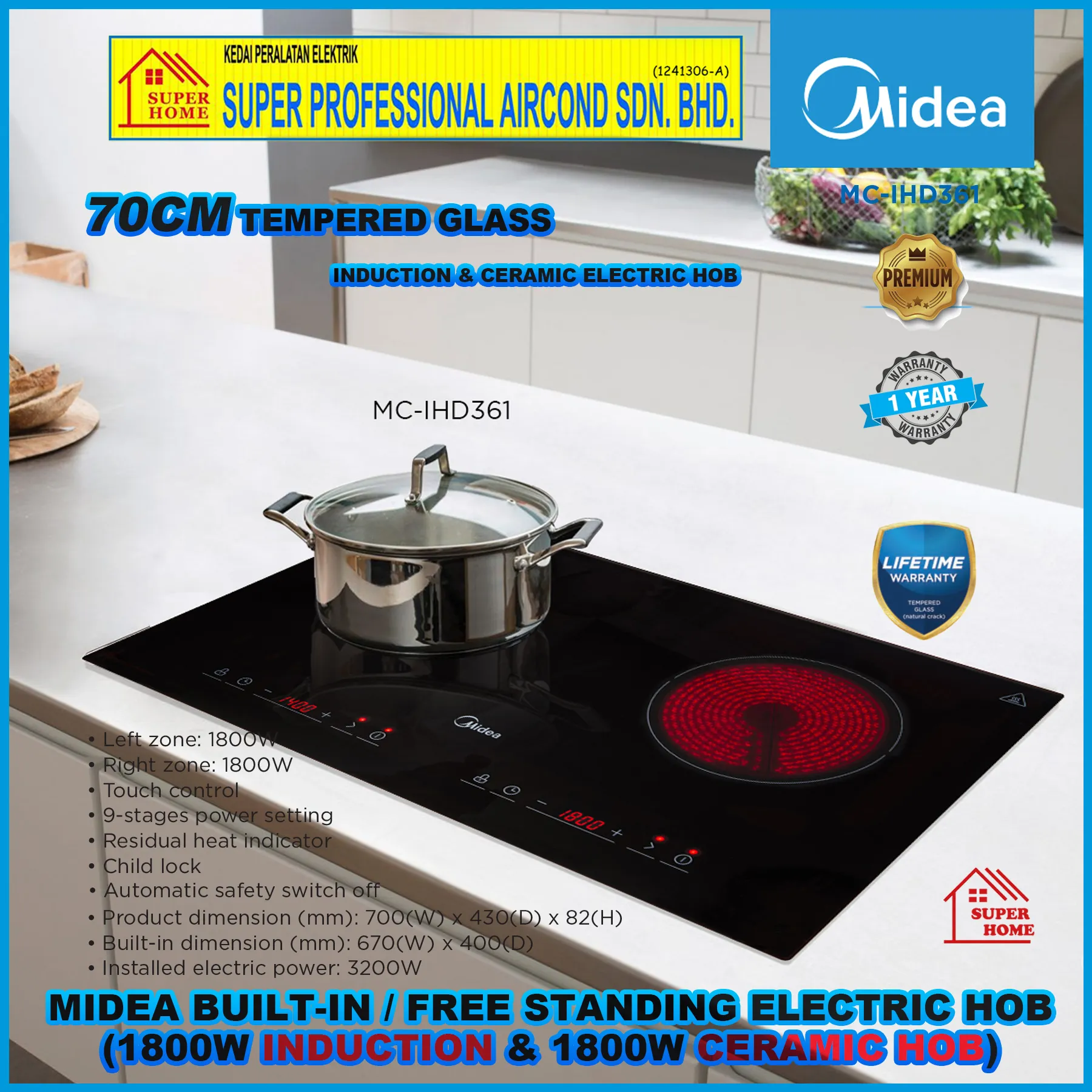 Super Professional Aircond Sdn Bhd Products Midea 70cm Tempered Glass Electrical Hob MC-IHD361 ((Built-in / Free Standing)) Induction & Ceramic Hob (1800W) Dual Zone Multi Cooker