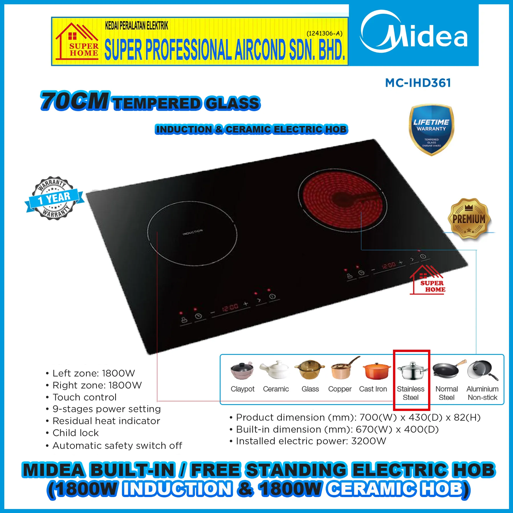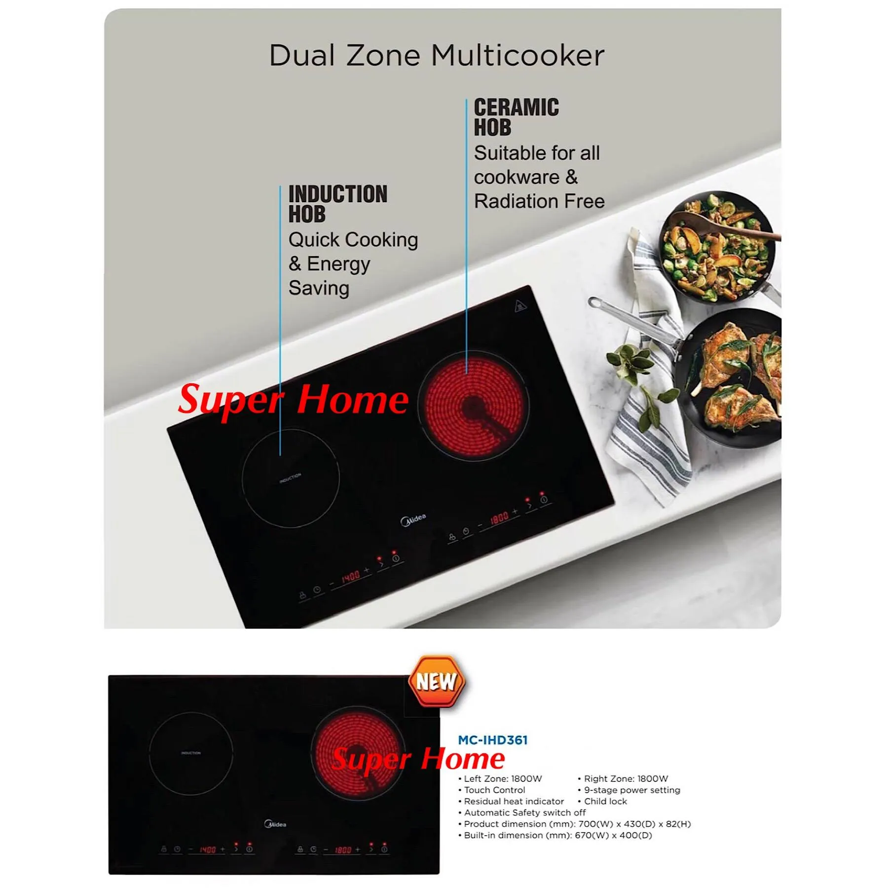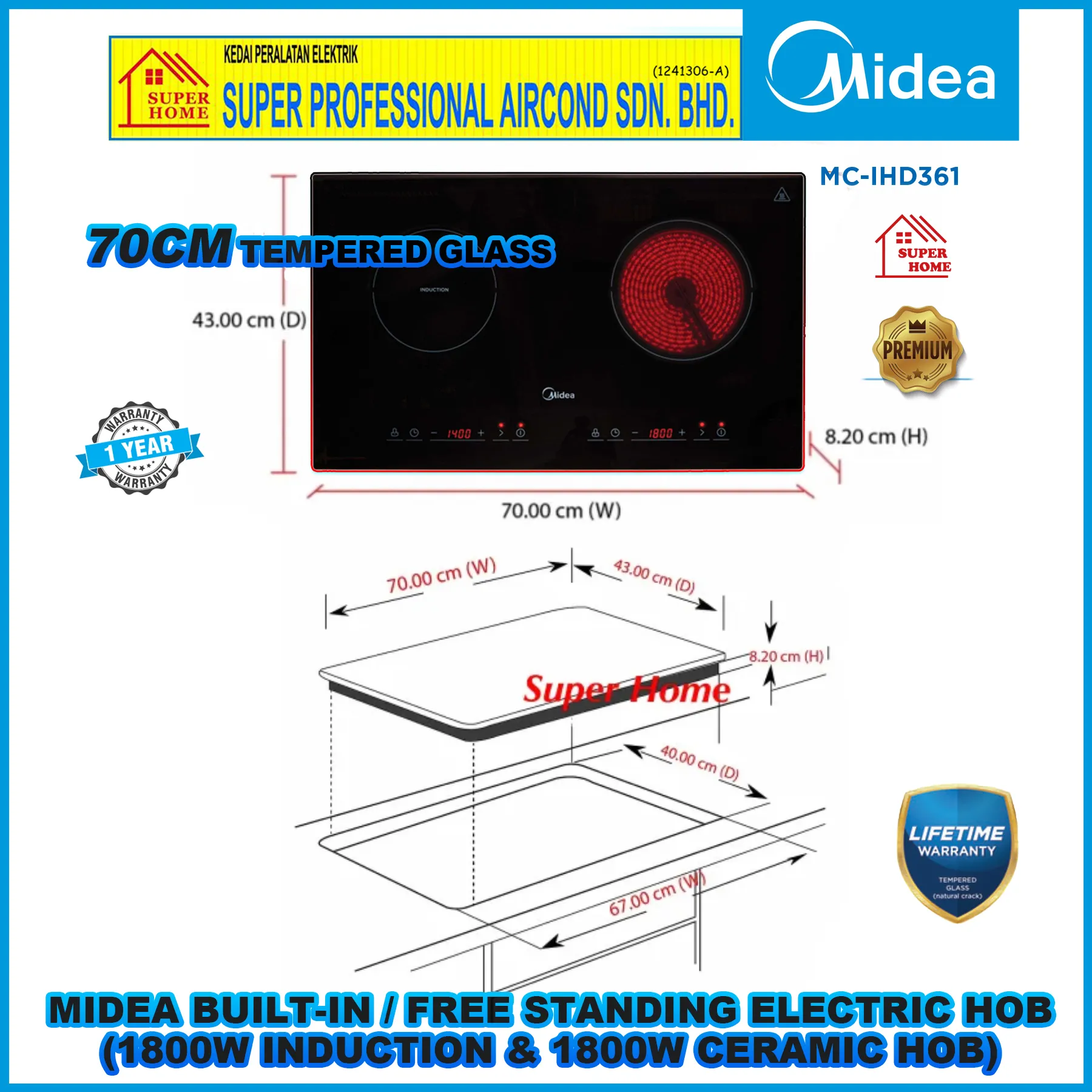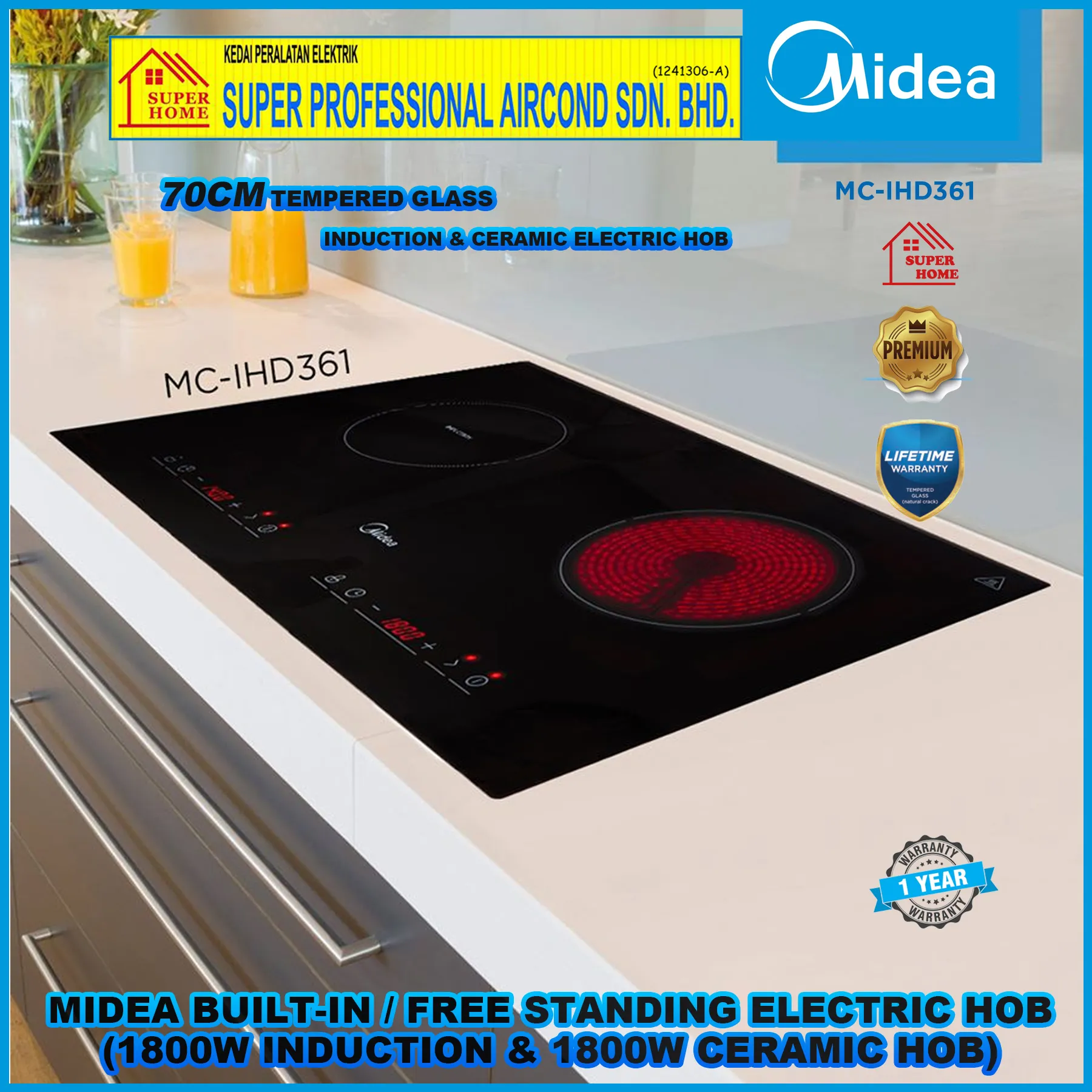 Super Professional Aircond Sdn Bhd Products Midea 70cm Tempered Glass Electrical Hob MC-IHD361 ((Built-in / Free Standing)) Induction & Ceramic Hob (1800W) Dual Zone Multi Cooker