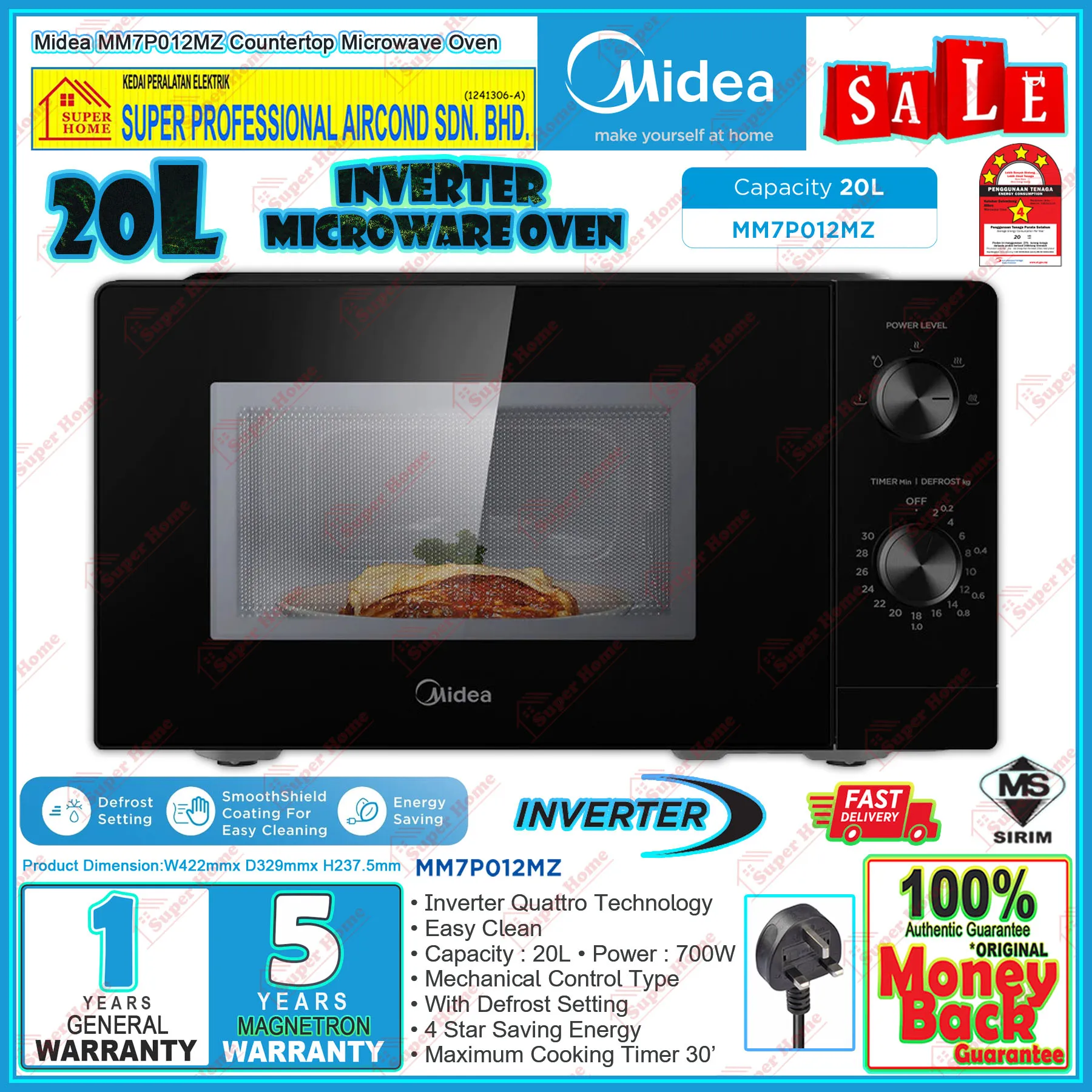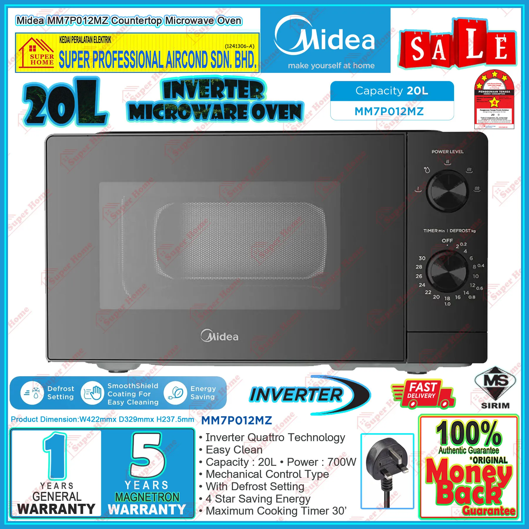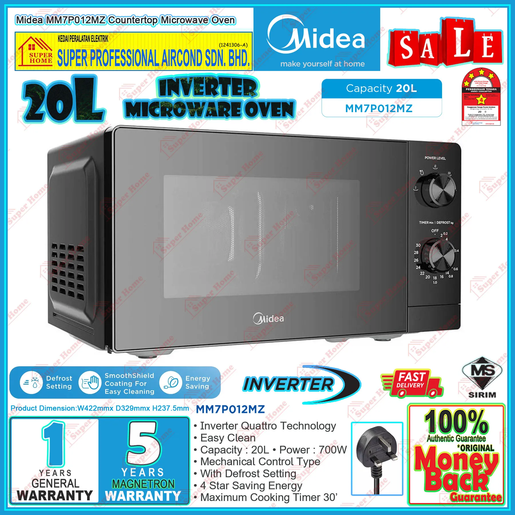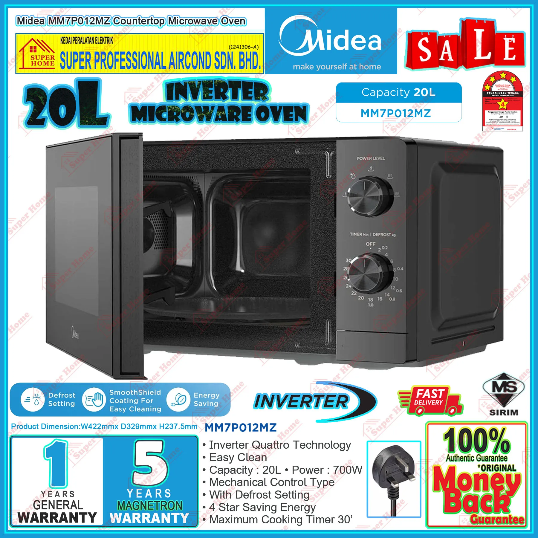 Super Professional Aircond Sdn Bhd Products Midea Microwave Oven MM7P012MZ 20L Counter Top Inverter Microwave Oven