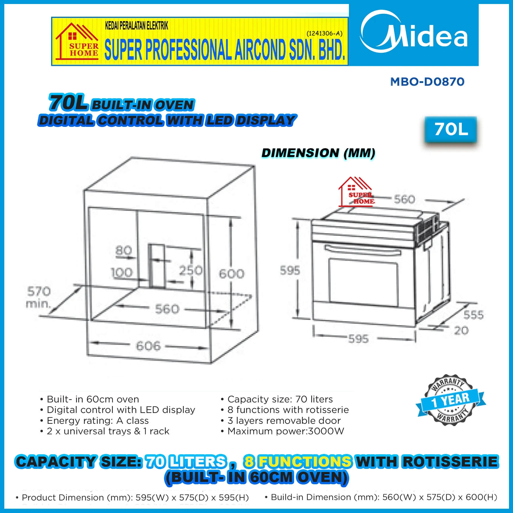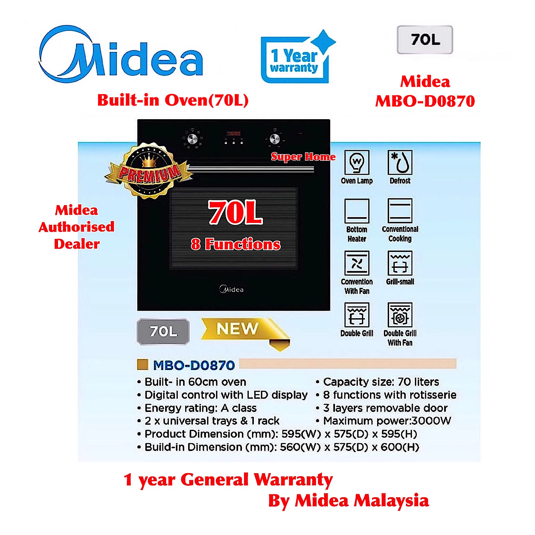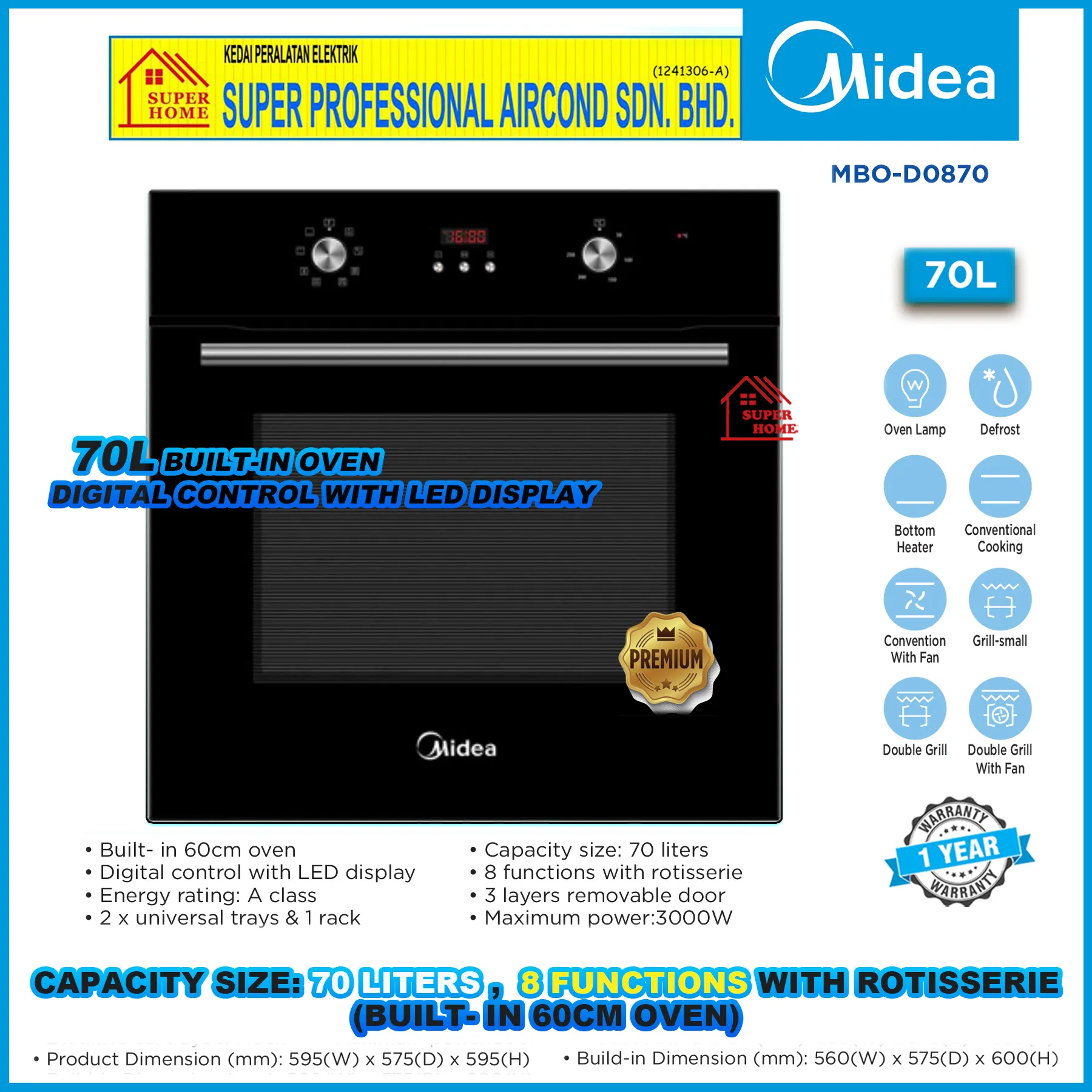 Super Professional Aircond Sdn Bhd Products Midea Build-in Oven 70L Build-in Oven Digital Control With 8 Functions