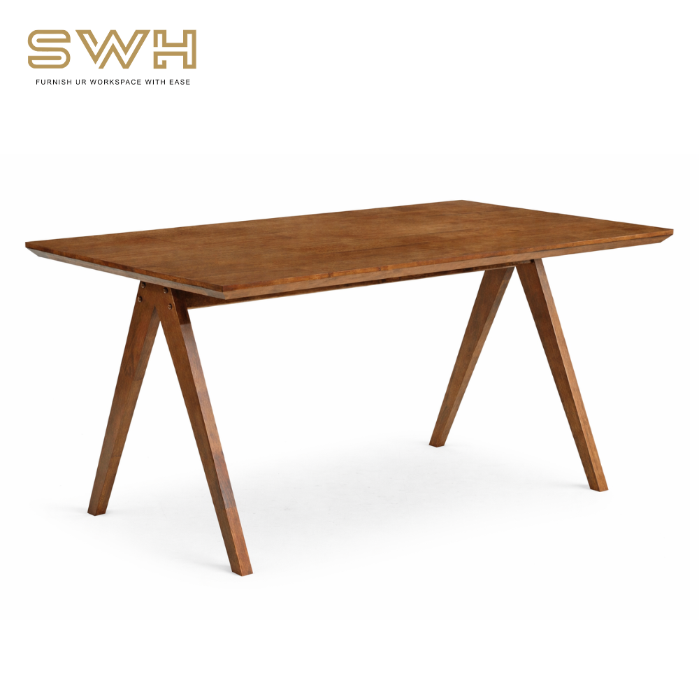 The ANCIENT Dining Table is designed to bring timeless simplicity and durability into dining spaces, cafés, and commercial interiors. Featuring a clean-lined tabletop supported by angled solid wood legs, it offers a balanced blend of classic craftsmanship and modern minimalism.