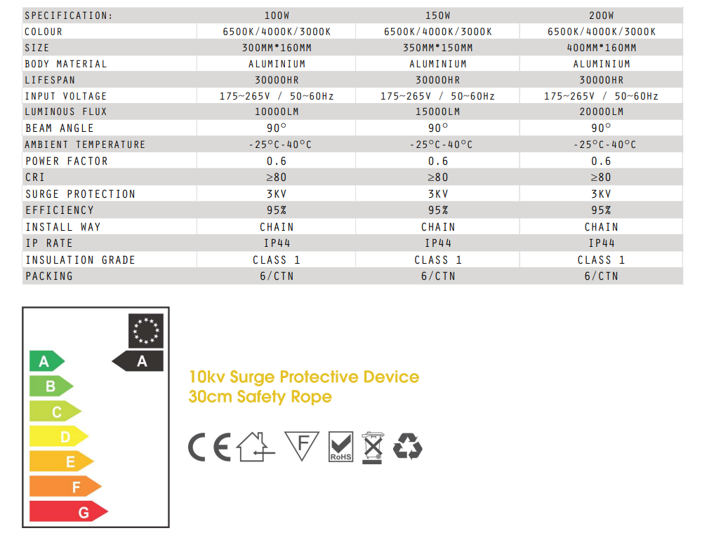 Wattage Options: 100W / 150W / 200W