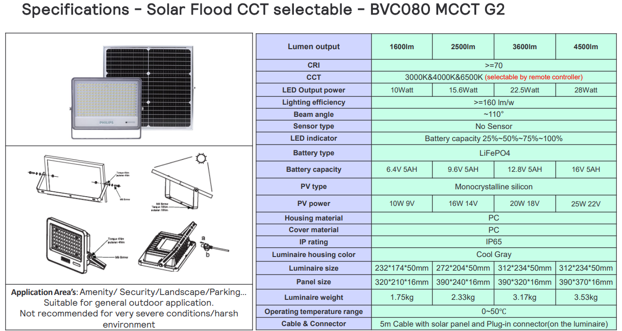 Backed by trusted PHILIPS quality, the BVC080 MCCT G2 offers durability, reliability, and excellent performance—making it a smart investment for customers seeking cost-effective solar lighting without compromising on quality.