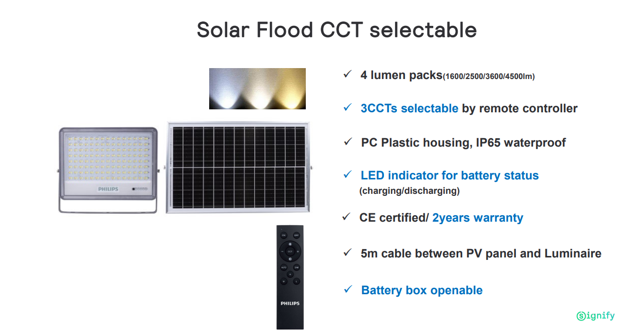 PHILIPS BVC080 MCCT G2 LED SOLAR FLOODLIGHT SELECTABLE CCT WITH REMOTE CONTROL IP65 CRI70 [LED36/LED45] [22.5W/28W] [3600LM/4500LM]