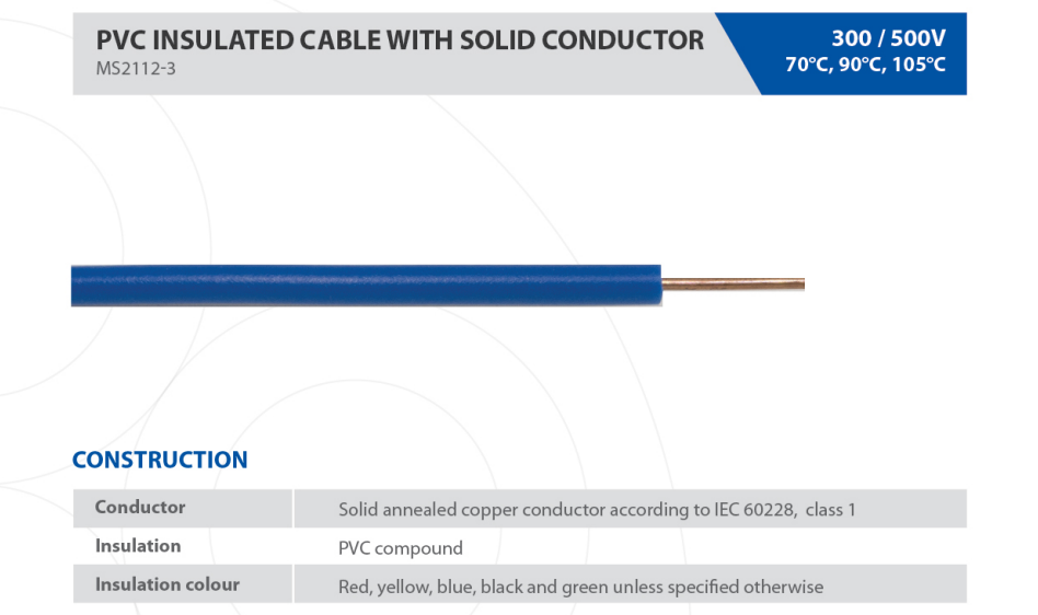 Product Type: PVC Insulated Single Core Cable