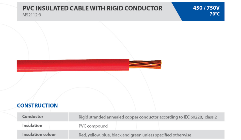 The FAJAR PVC INSULATED SINGLE CORE CABLE WITH RIGID CONDUCTOR [450V/750V] [1.5MM²-630MM²] is a reliable and high-performance electrical cable designed for fixed wiring installations that demand strength, stability, and long-term safety.