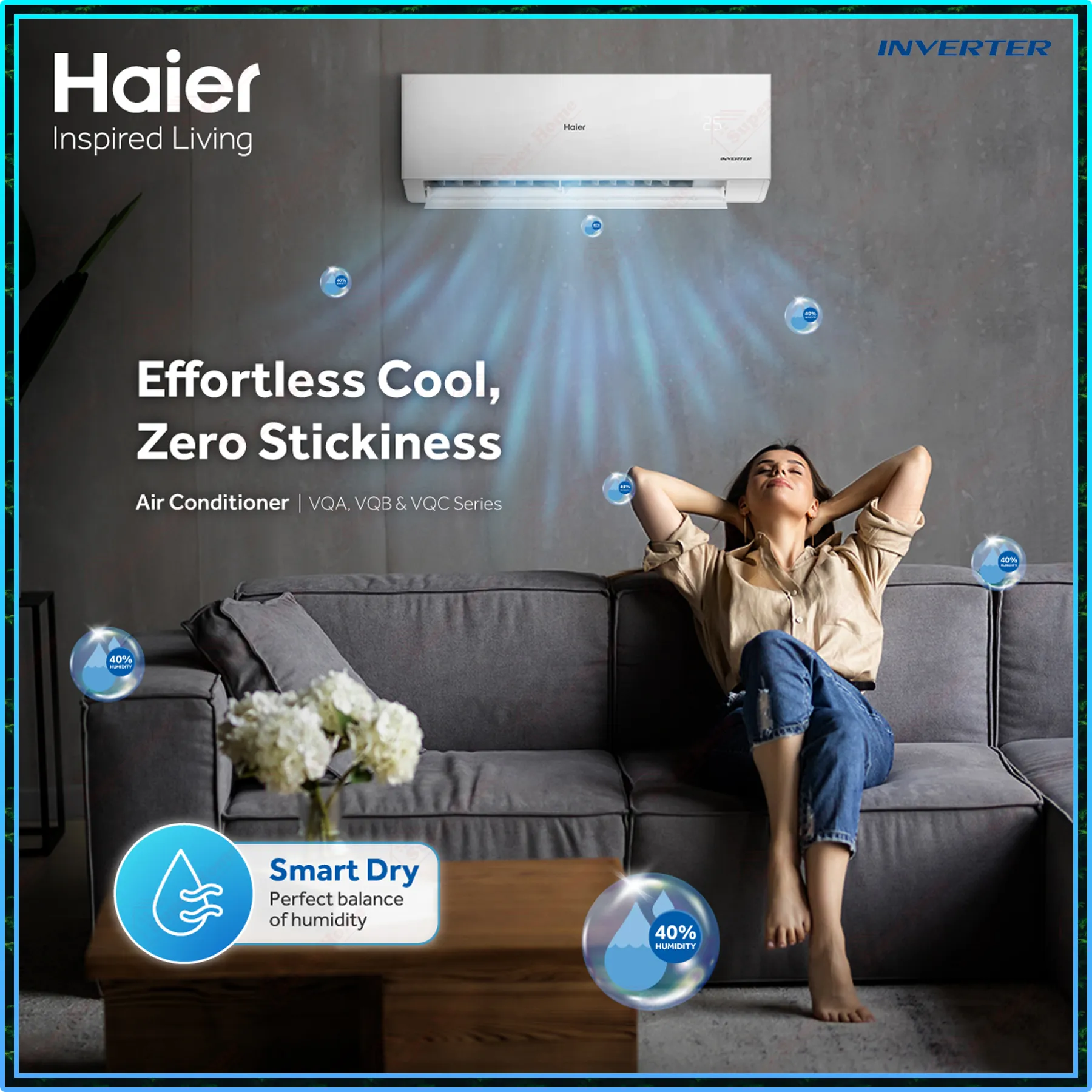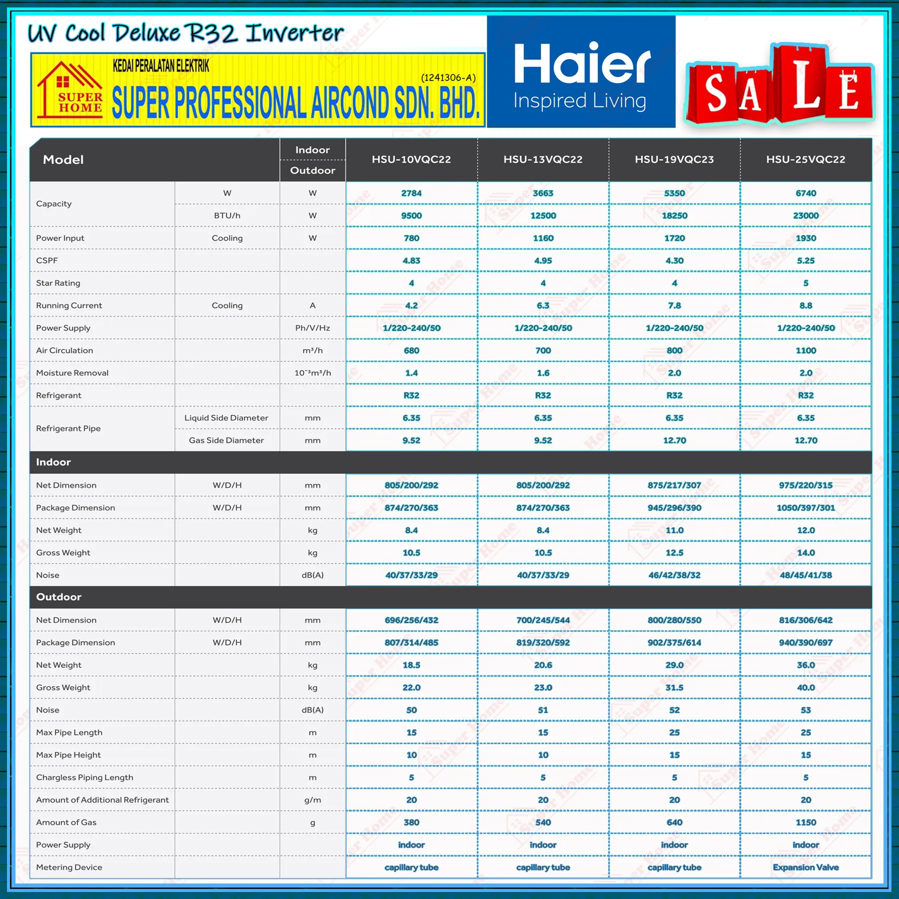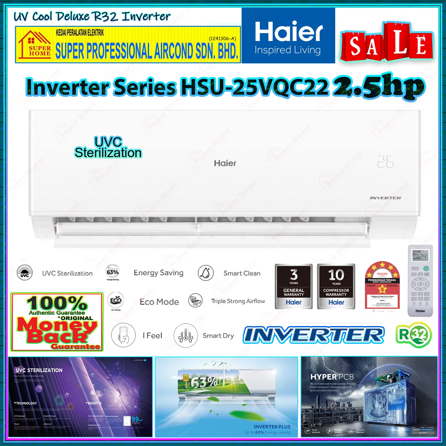Super Professional Aircond Sdn Bhd Products Haier 2.5hp Inverter Air Conditioner HSU-25VQC22 R32 Energy Saving Inverter Aircond ((UVC Sterilization))