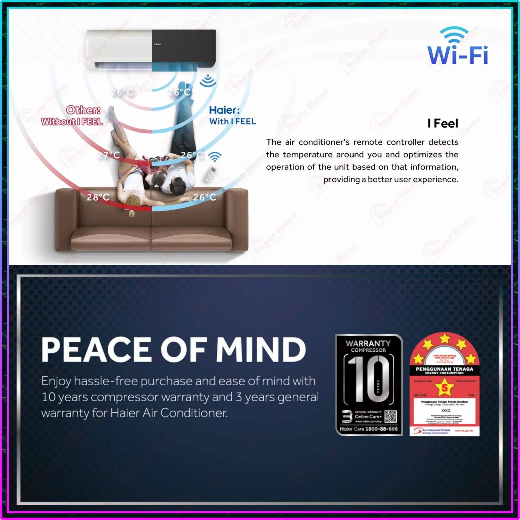 Super Professional Aircond Sdn Bhd Products Haier 1.5hp Inverter Air Conditioner HSU-13VRA22 (WiFi) UV Cool Smart R32 5 Star Energy Rating Inverter Aircond ((UVC Sterilization))