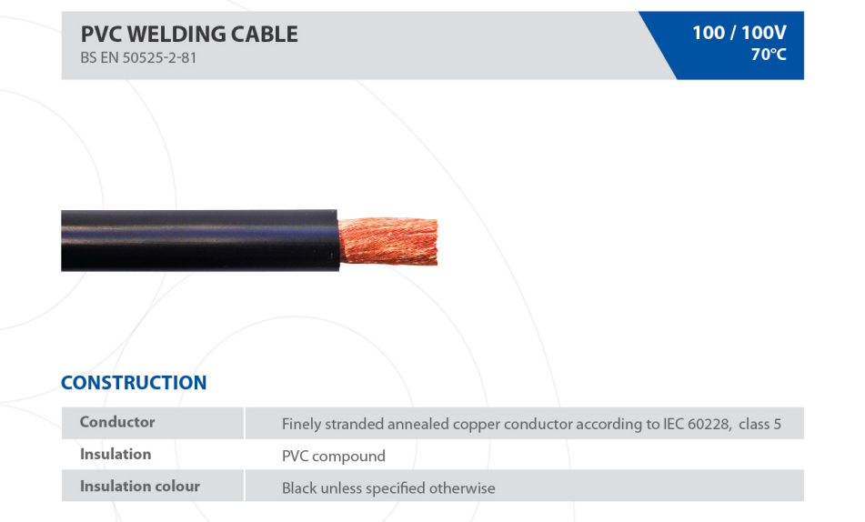 Available in a wide range of conductor sizes from 10mm² up to 185mm², the FAJAR SYNTHETIC RUBBER WELDING CABLE 100V [2x0.5MM²/10MM²–185MM²] is suitable for light welding tasks to heavy-duty industrial welding applications, offering versatility and long-term reliability.
