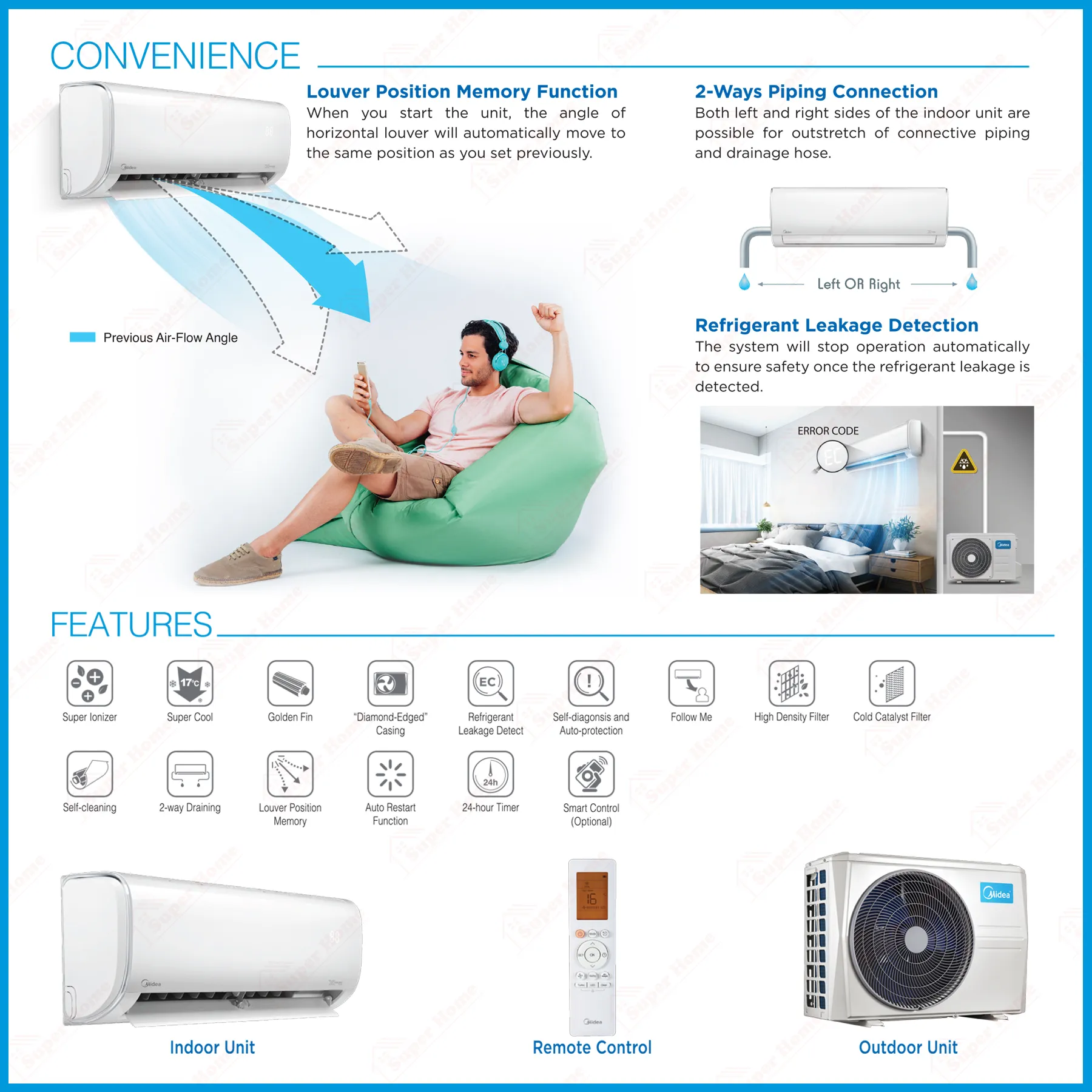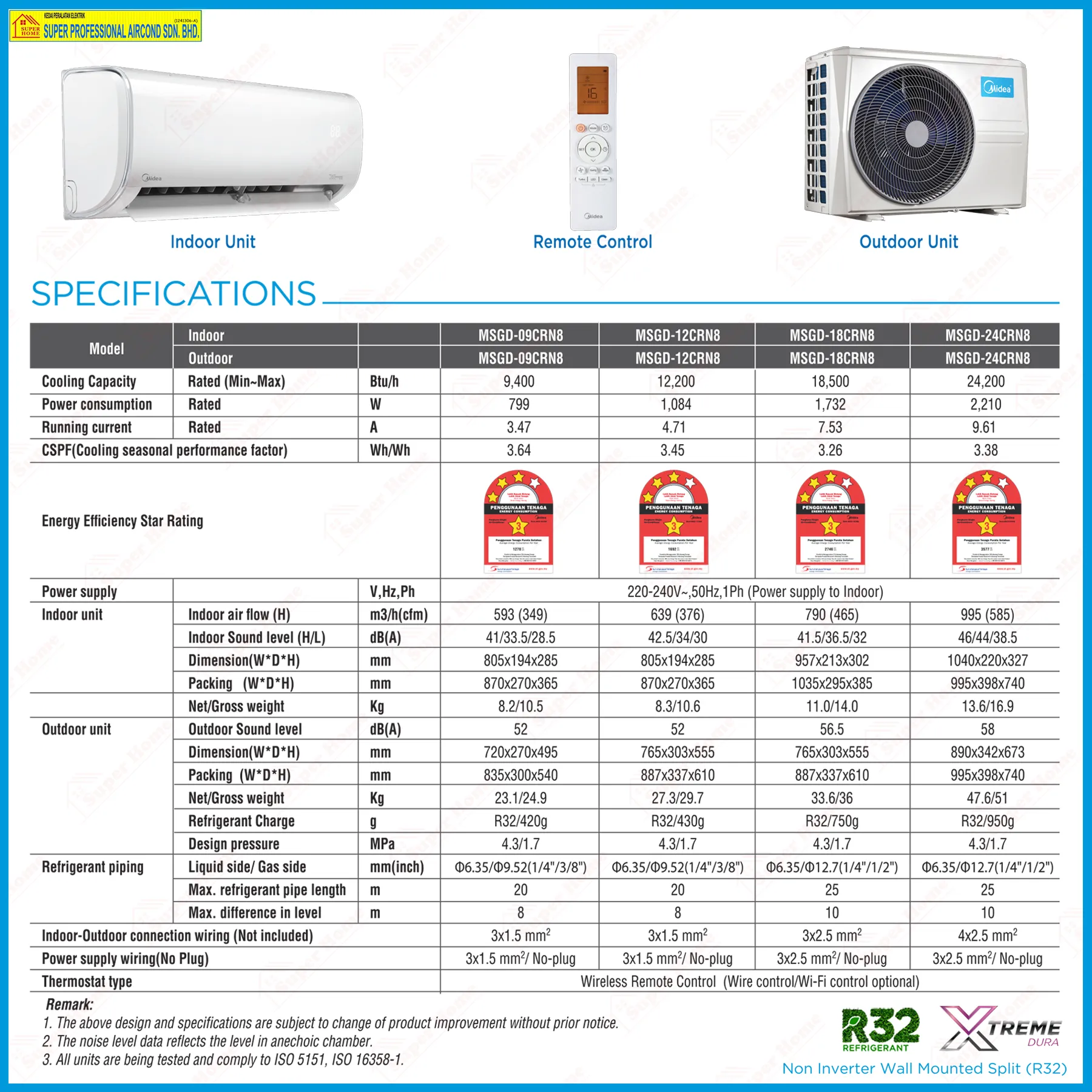 - Refrigerant Piping mm(inch) : Liquid side 6.35(1/4") | Gas Side 9.52(3/8")