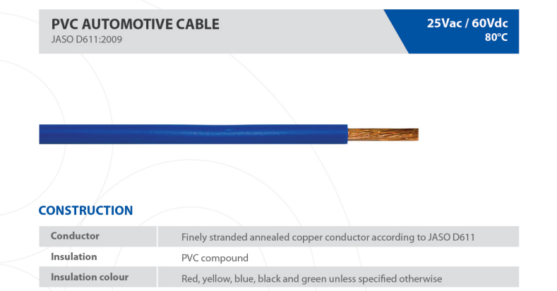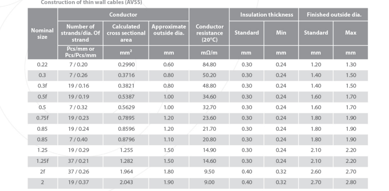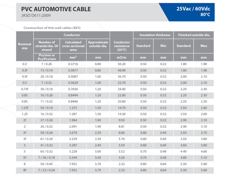 Rated for 25VAC / 60VDC, this automotive cable is suitable for a wide range of applications such as vehicle wiring, control circuits, signal transmission, and electrical connections in cars, motorcycles, and commercial vehicles. The nominal size range from 2f to 100f ensures flexibility in meeting different current-carrying and installation requirements.