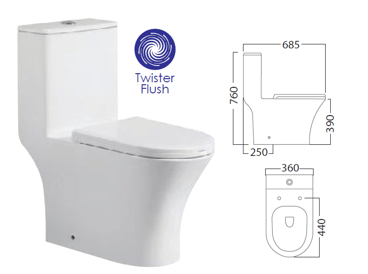 CABANA CWC7606-SH One Piece WC Twister Flush