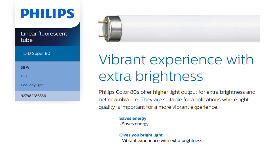 Product Name: PHILIPS TL-D SUPER 80 Linear Fluorescent T8 Tube