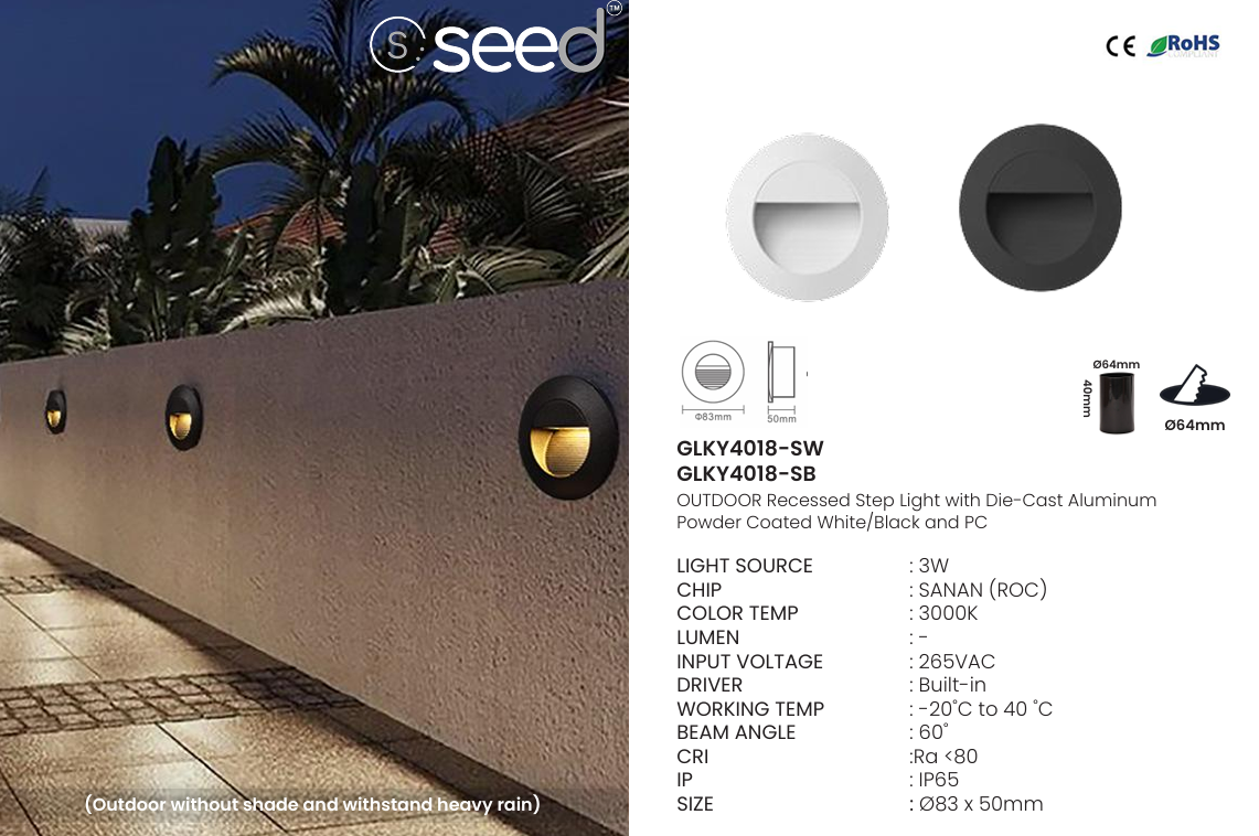 Product Name: SEED GLKY4018 Outdoor Recessed LED Step Light
