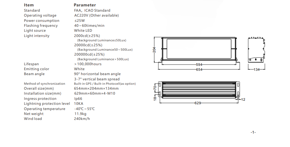 Type: High Intensity LED Aviation Obstruction Light Type A